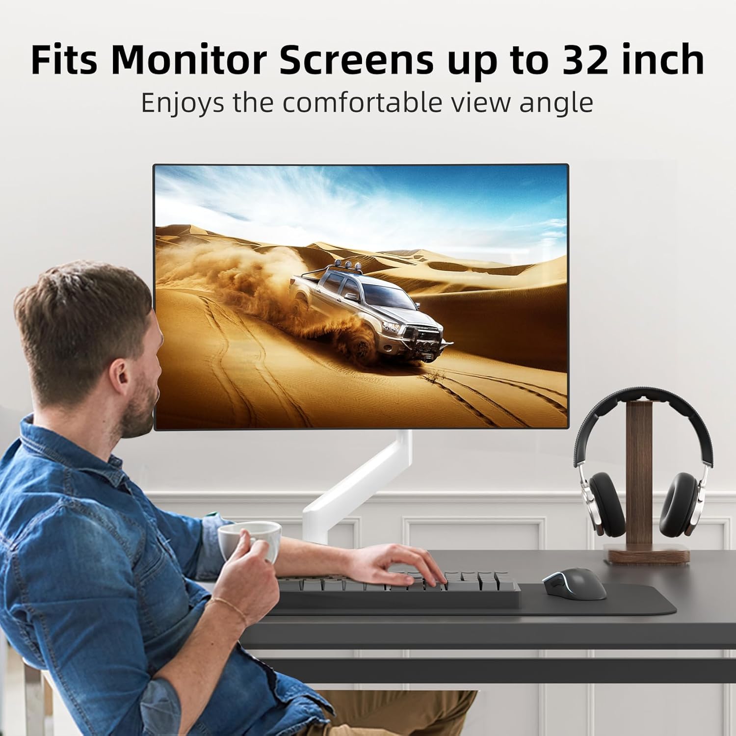 Suptek Single Monitor Mount Adjustable Gas Spring Monitor Arm Desk Mount Stand Fits 17 20 22 23 24 26 27 32 33 inch Monitors,Holds up to 22 lbs,White(MD18W)