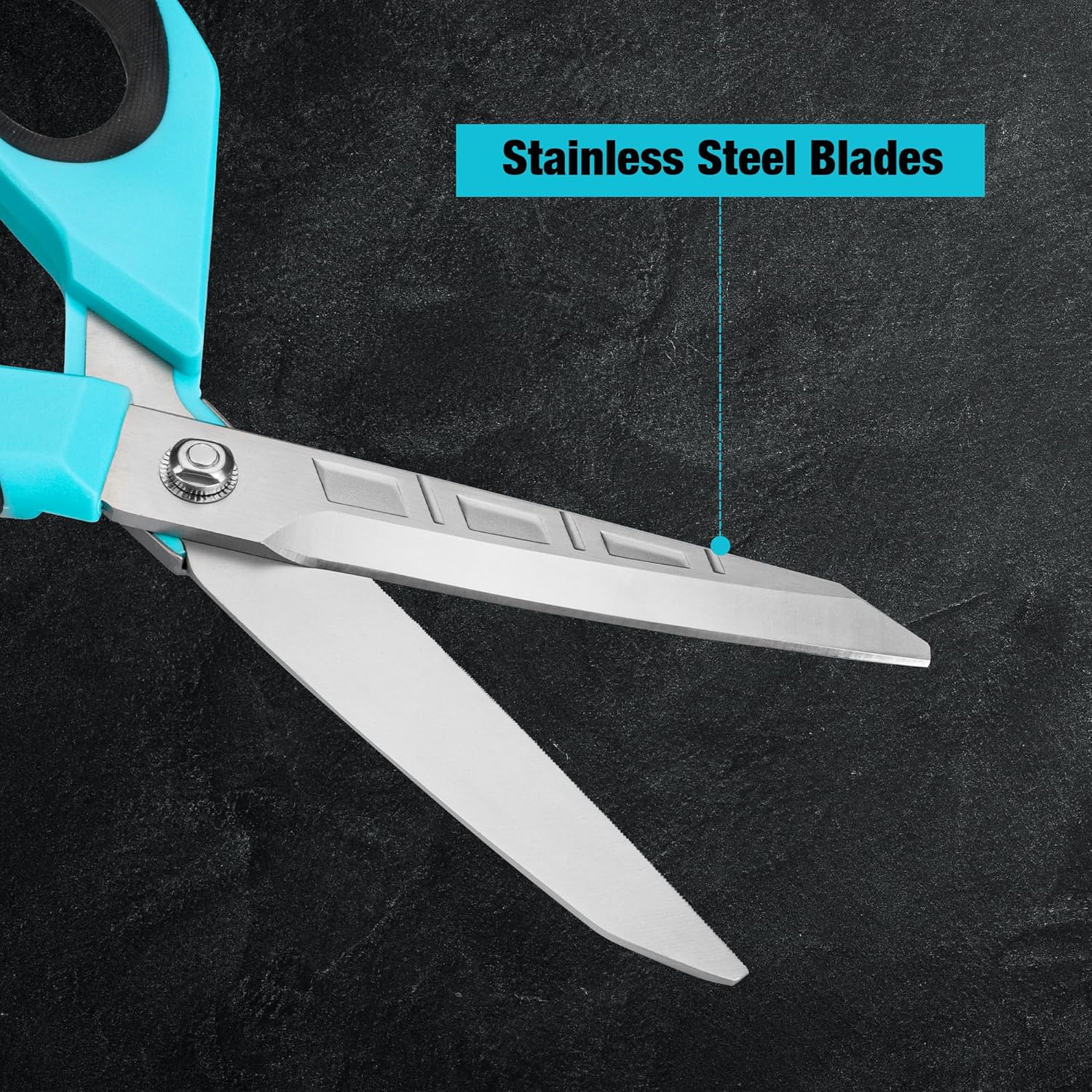 - Serrated Blade: The lower blade is finely serrated to grip materials securely, reducing slippage and making these all-purpose heavy-duty scissors more effective on slick or tough surfaces like fabric, plastic, and rope