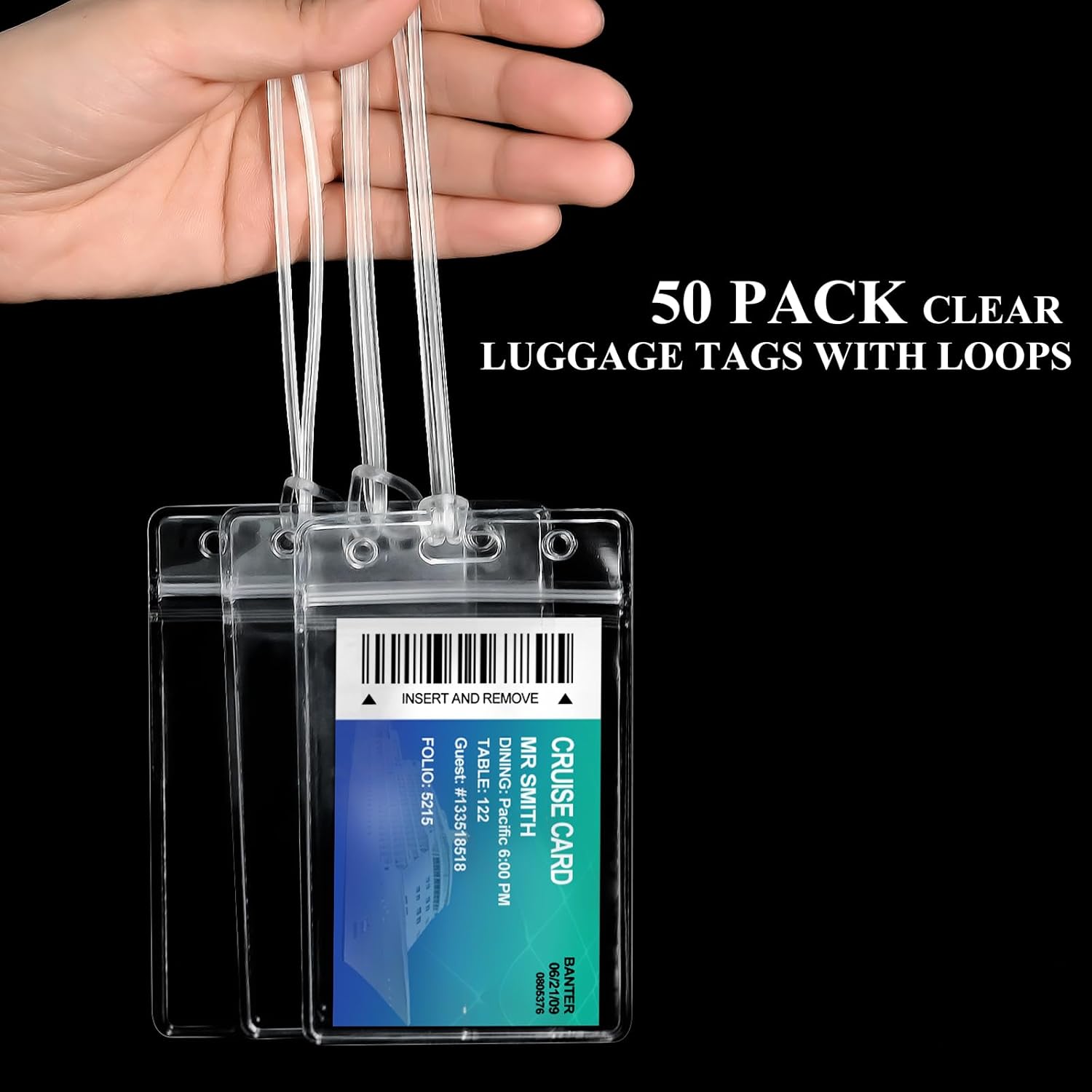 10 Pack Clear Plastic Luggage Bag Tag Holder Badge Label Tag Holder with 10 Pack Luggage Loops Straps for Office Business Travel Supplies