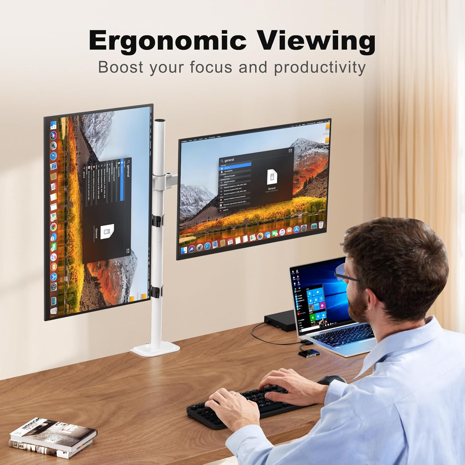 Suptek Dual LED LCD Monitor Stand up Desk Mount Extra Tall 31.5" Pole Heavy Duty Fully Adjustable Stand for 2 / Two Screens up to 27 inch,White (MD6842W)