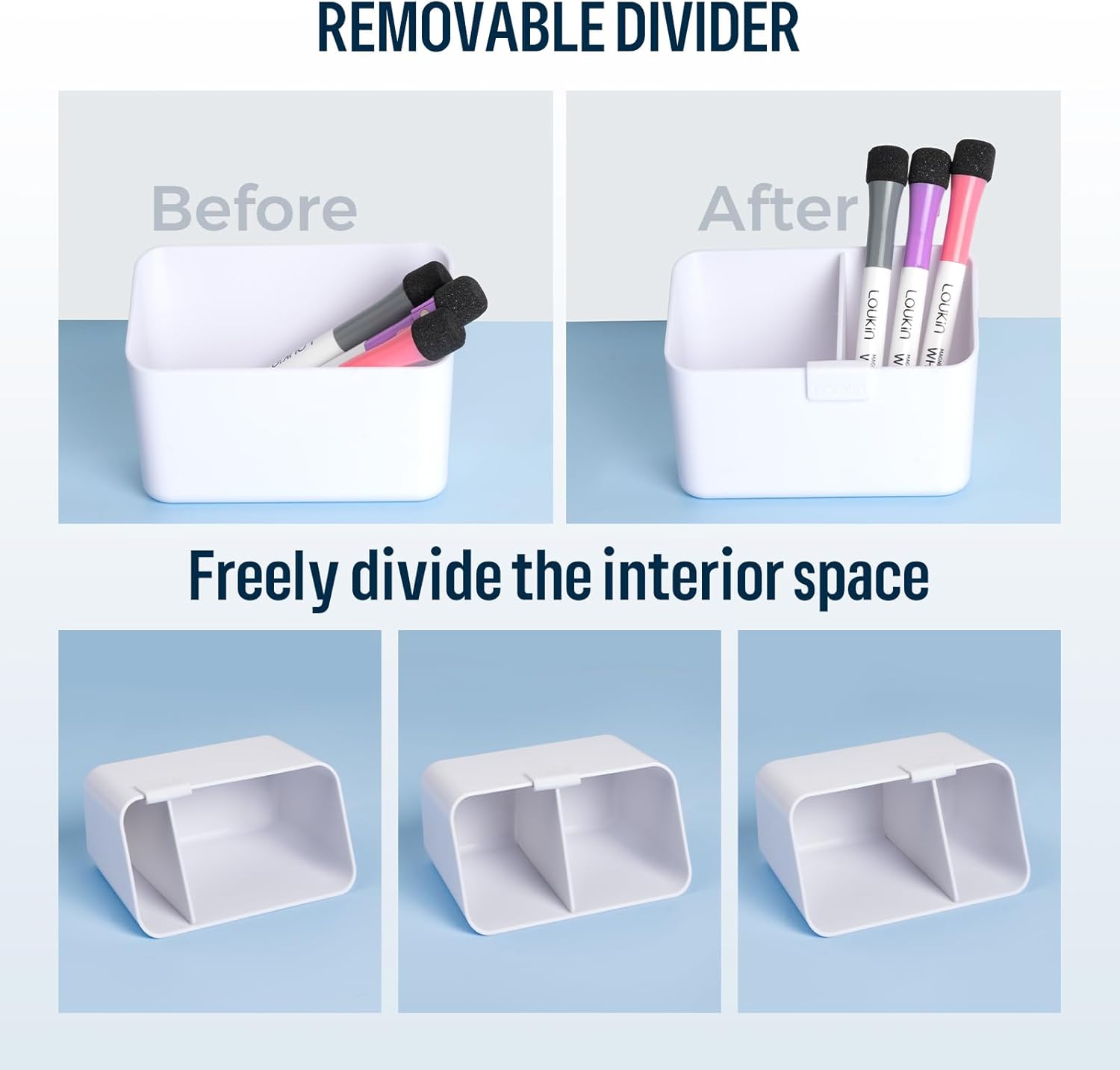 loukin Magnetic & Adhesive Dry Erase Marker Holder with Diver, 1 Small + 1 Mini, Magnetic Storage Organizer for Whiteboard or Refrigerators (White)