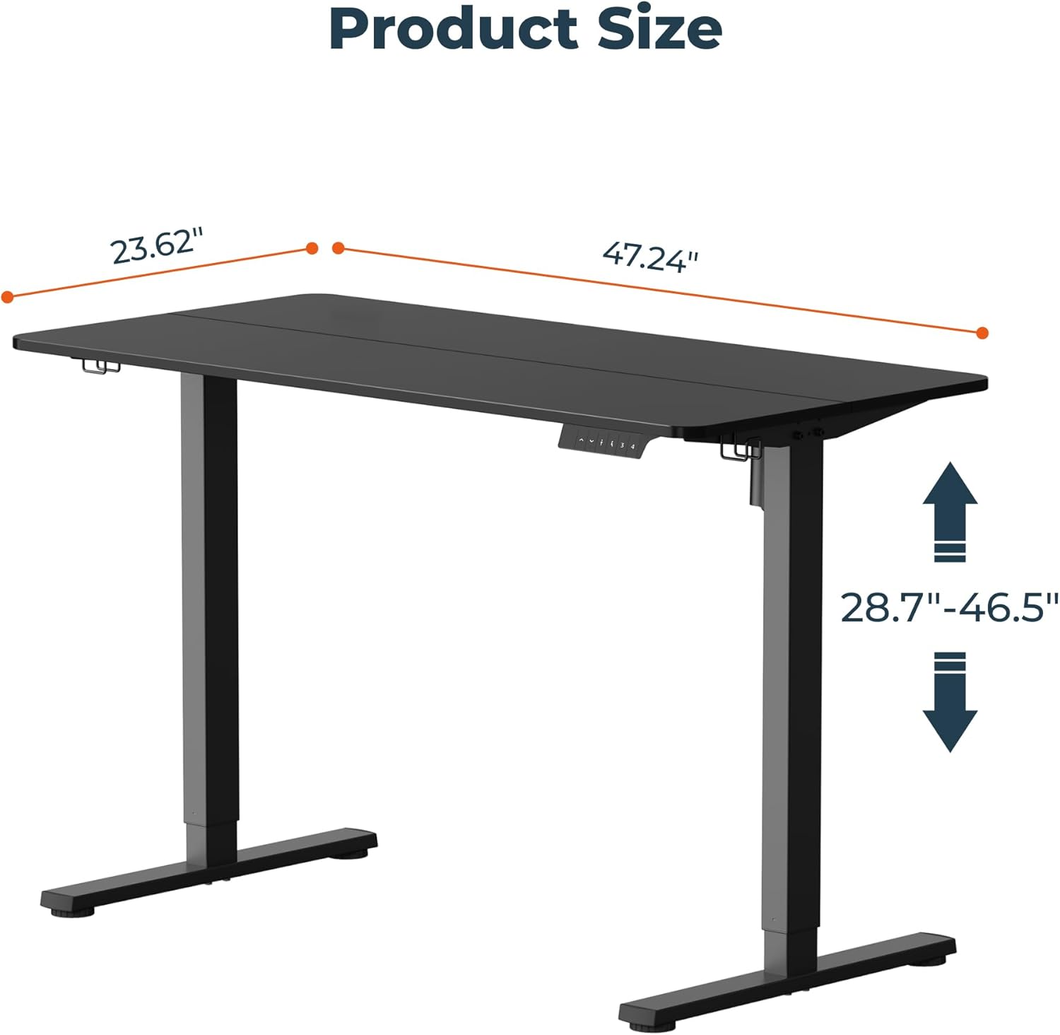 Adjustable Standing Desk, 47x24 Inches Home Office Desk with Memory Preset, Home Office Desk Computer Workstation Splice Black Top + Black Frame