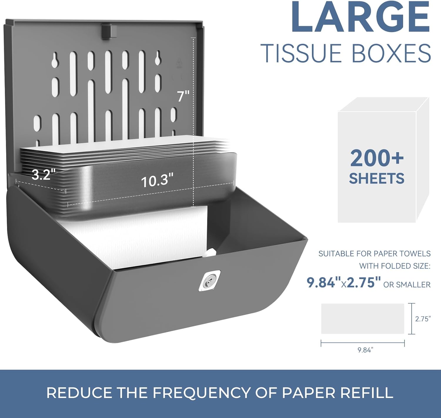 - 【200pcs CAPACITY & TRANSPARENT WINDOW】This towels dispenser Holds up to 200 papers. You can quickly check and refill towels by the big transparent window.