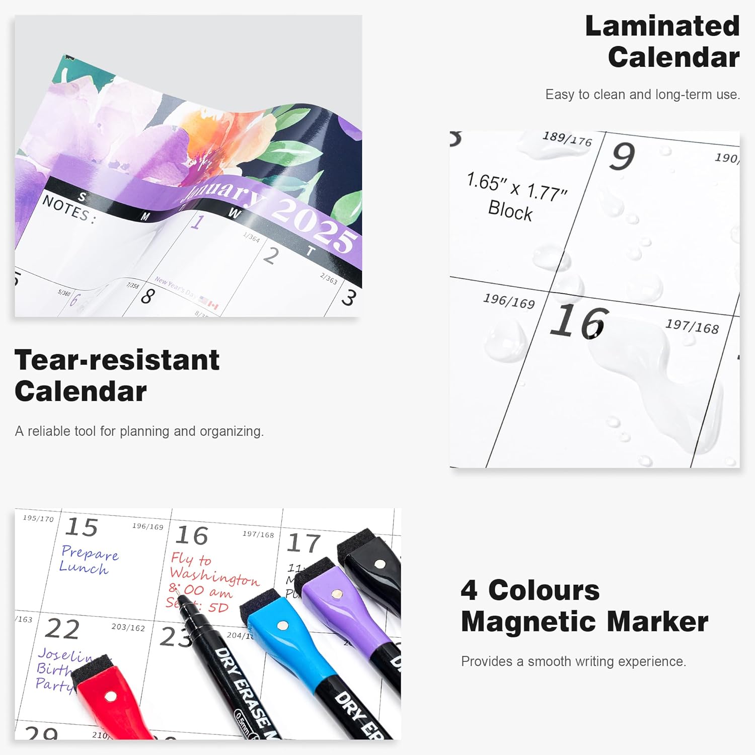 - ⨠Dry Erase Wall Calendar : is made of PET Film and 300 grams Copperplate Paper, providing a durable surface that resists scratches and smudges, while the sturdy Copperplate Paper backing keeps it in place without curling.