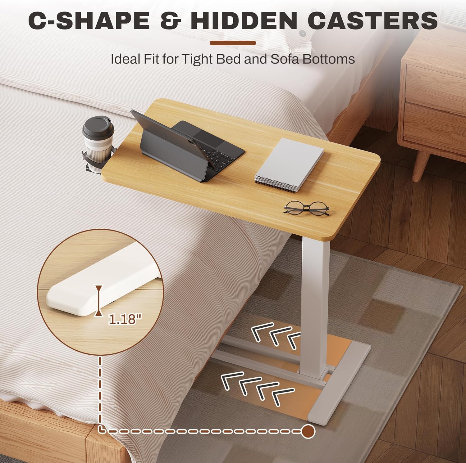 - Multi-function in One Design:This rolling computer desk offers a reliable and convenient desktop surface(Table top made of FSC-Certified wood) for anyone to use near furniture like beds, couches and recliners. It can also be used as breakfast tray for bedridden patients and elderly (e.g. eating, reading, working)without having to get off their beds.