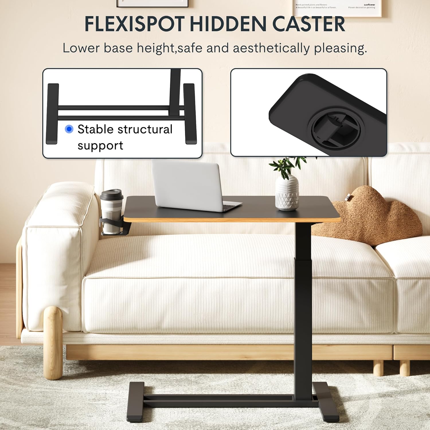 - Easy to move around & space-saving: Flexispot standing desk portable desk is equipped with 4 hidden casters to easily maneuver it anywhere you like. It’s an ideal portable workstation for any home or office! A low-profile base with smooth rolling wheels eases and tuck beneath furniture minimum 1.2" high to save space.