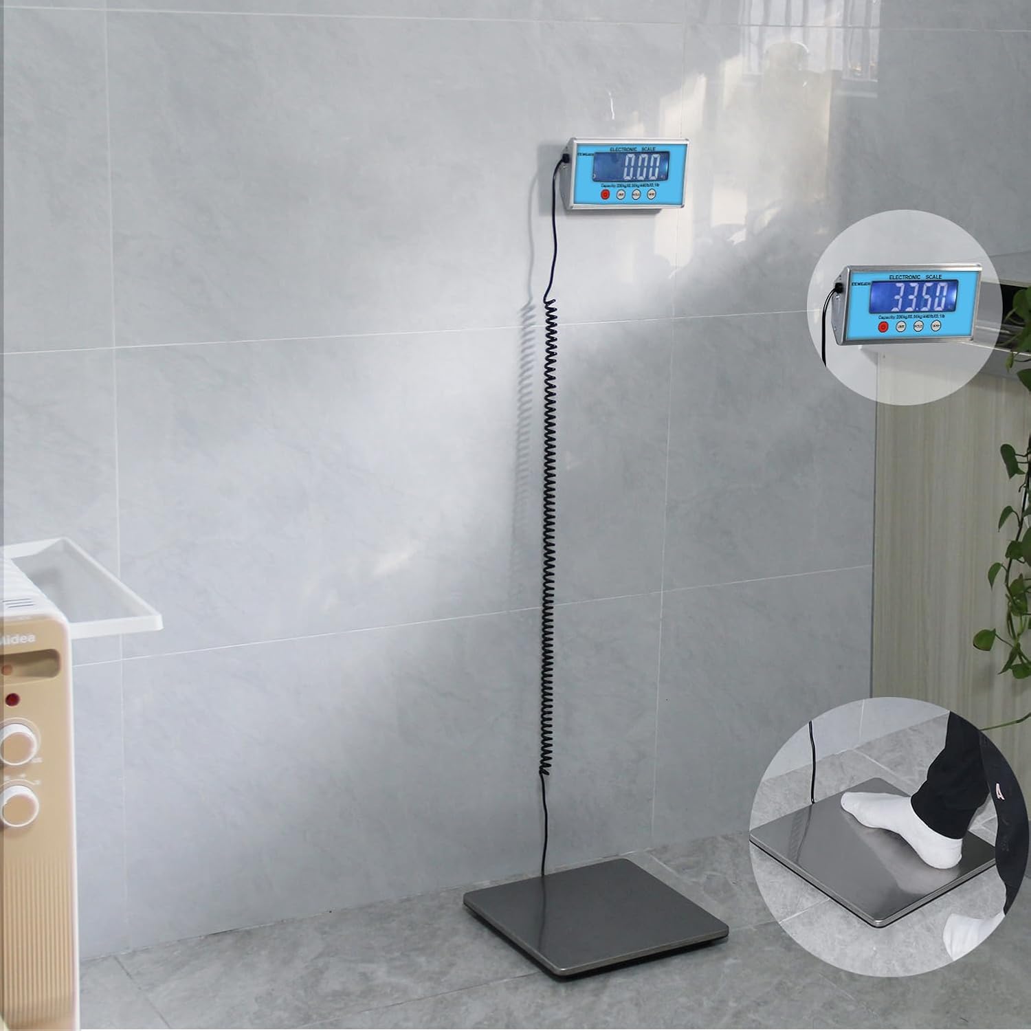 - STAINLESS STEEL PLATFORM SCALE: Sleek design large platform and screen with long cable ensures that you can put large objects on the scale and still see the reading. Two back nail slots allow you to mount the screen on the wall.