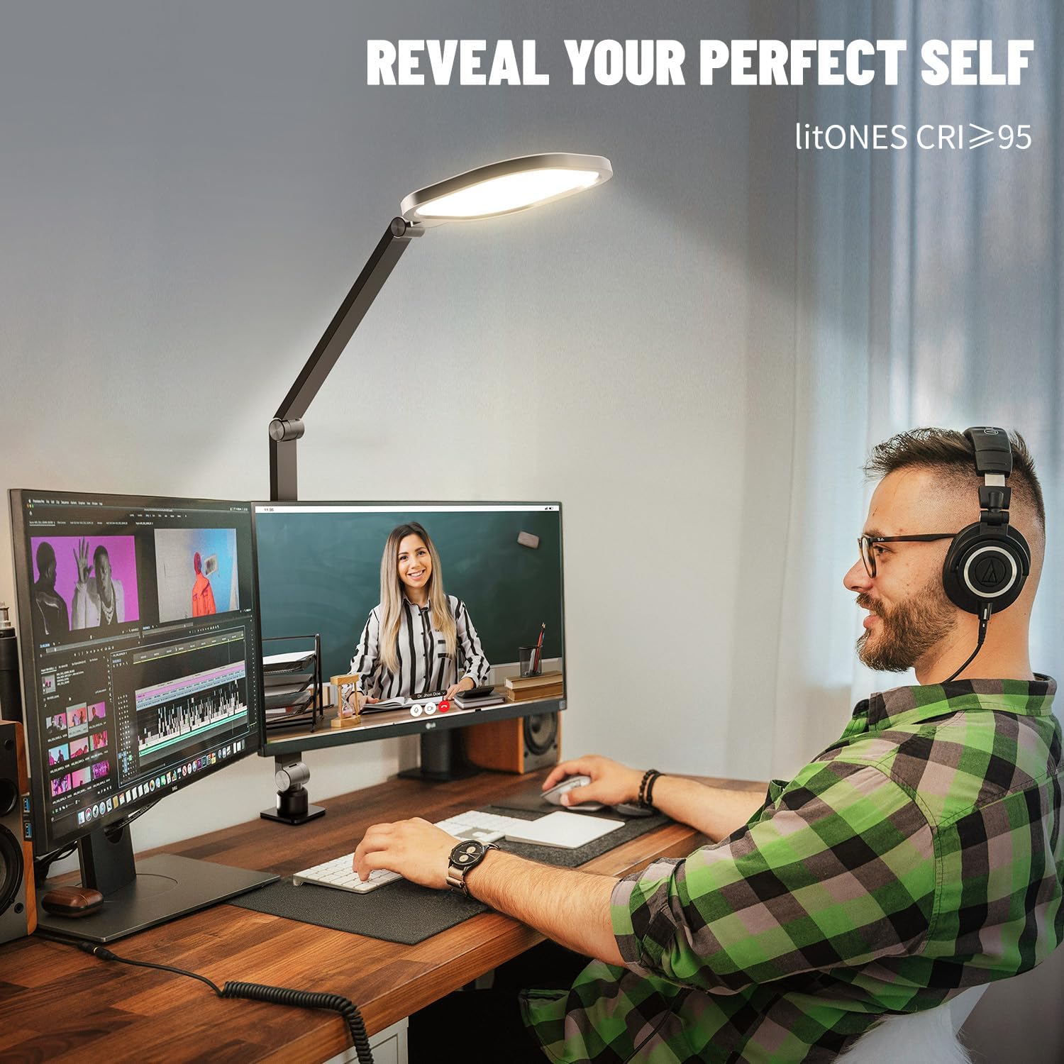 - 【Flexible & Adjustable for Any Setup】--- With a 5-point adjustable rotating arm, you can effortlessly position the light exactly where you need it—perfect for Zoom meetings, gaming, crafting, or computer work. The sturdy clamp supports desks up to 2.73" thick, with soft, non-slip padding to protect your surface while ensuring a secure grip. Whether you need focused task lighting or full-desk illumination, LitONES adapts to your needs;