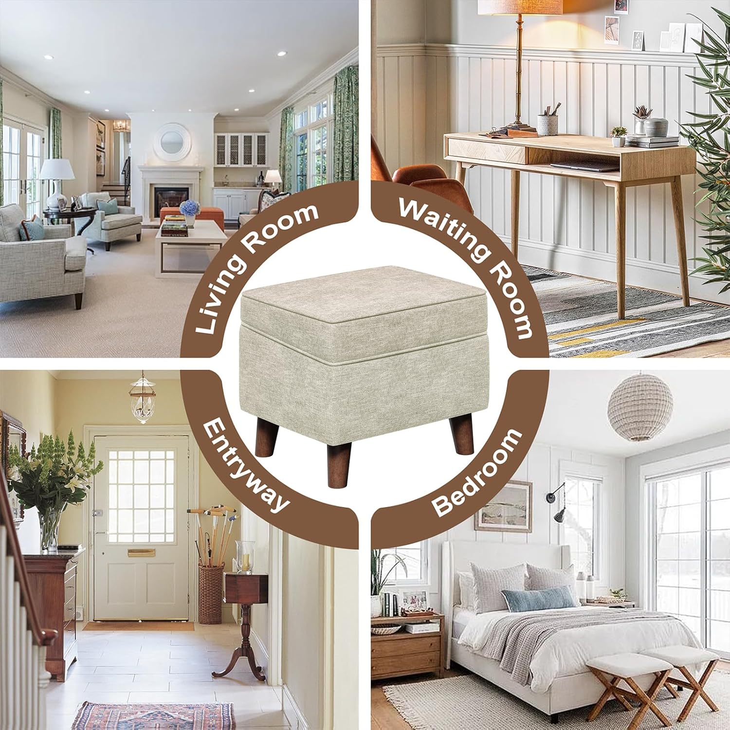 Foot Rest with Adjustable Cover, 18" Storage Ottoman Dorm, Footstool and Sitting Stool, Ottoman Foot Stools for Living Room, Bedroom, Dorm, Beige