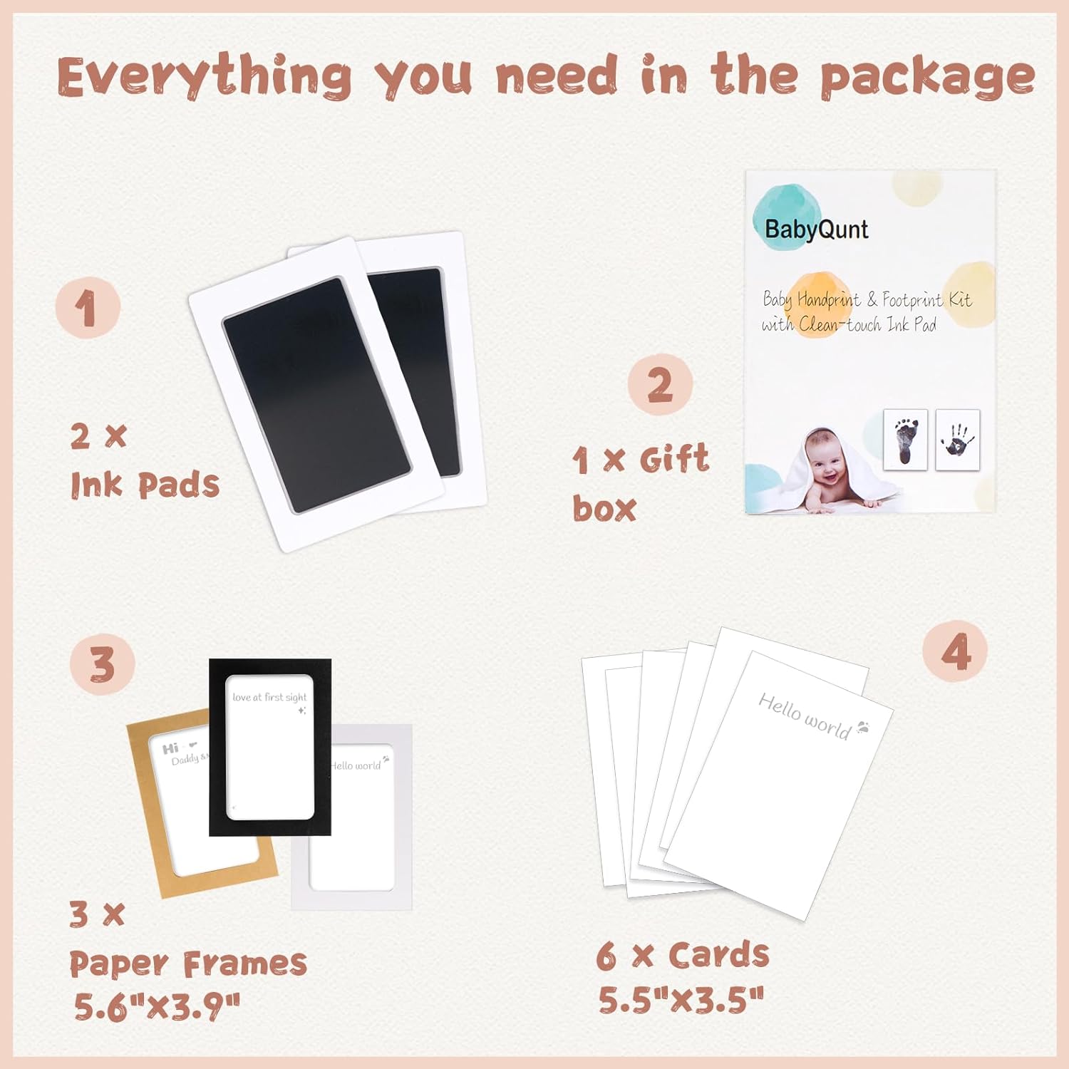 - 【Product Details】: Our baby hand and footprint kit measures 5.0"x3.2" with an ink window of 3.7"x2.3", which is the best size for recording hand and footprints of newborns 0-6 months old or pet paw prints . The ink pad for baby hand and footprints includes 2 clean touch ink pads, 6 stamping cards, and 3 display frames, ensuring you have ample opportunity to capture the best stamp.