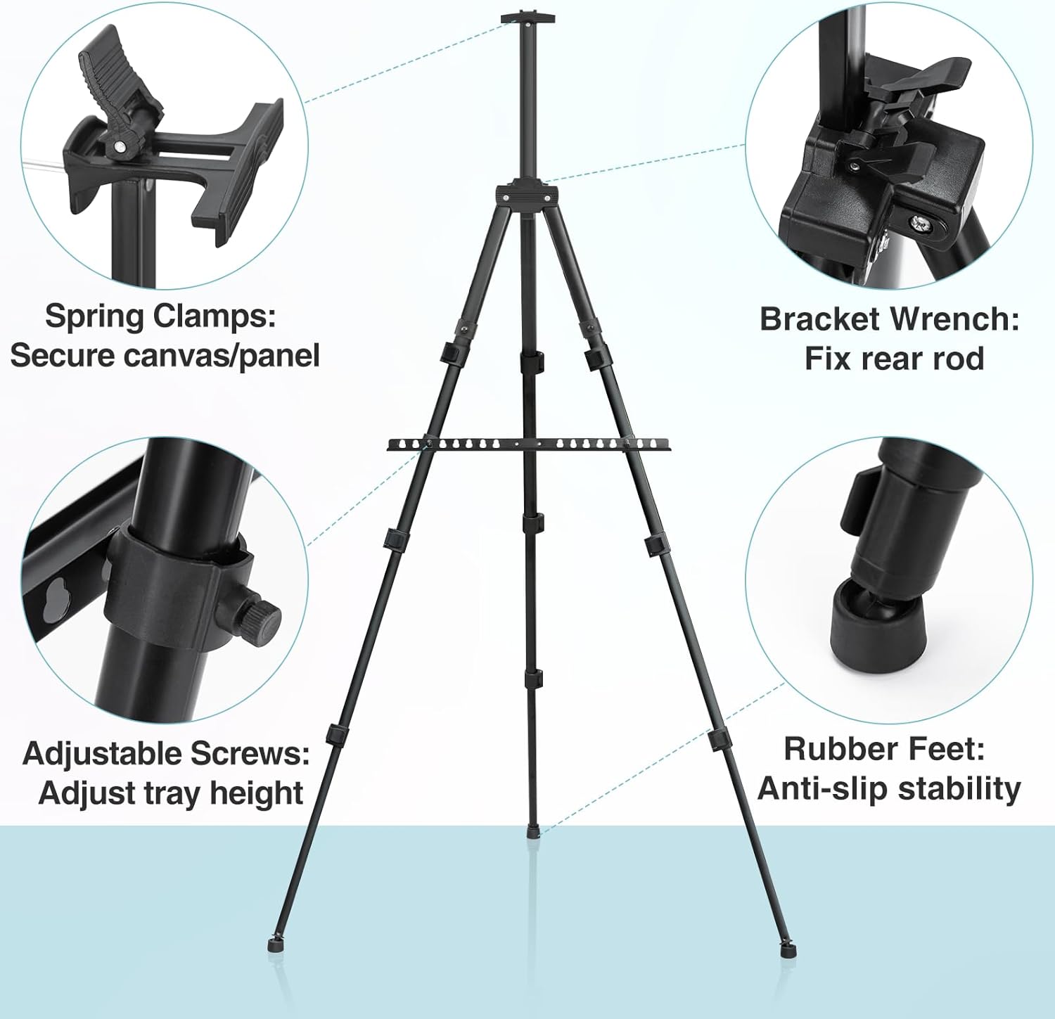 - 【Easy to Install】The artist easels for painting has telescopic and folding function, can be installed without additional tools, very convenient to use and store