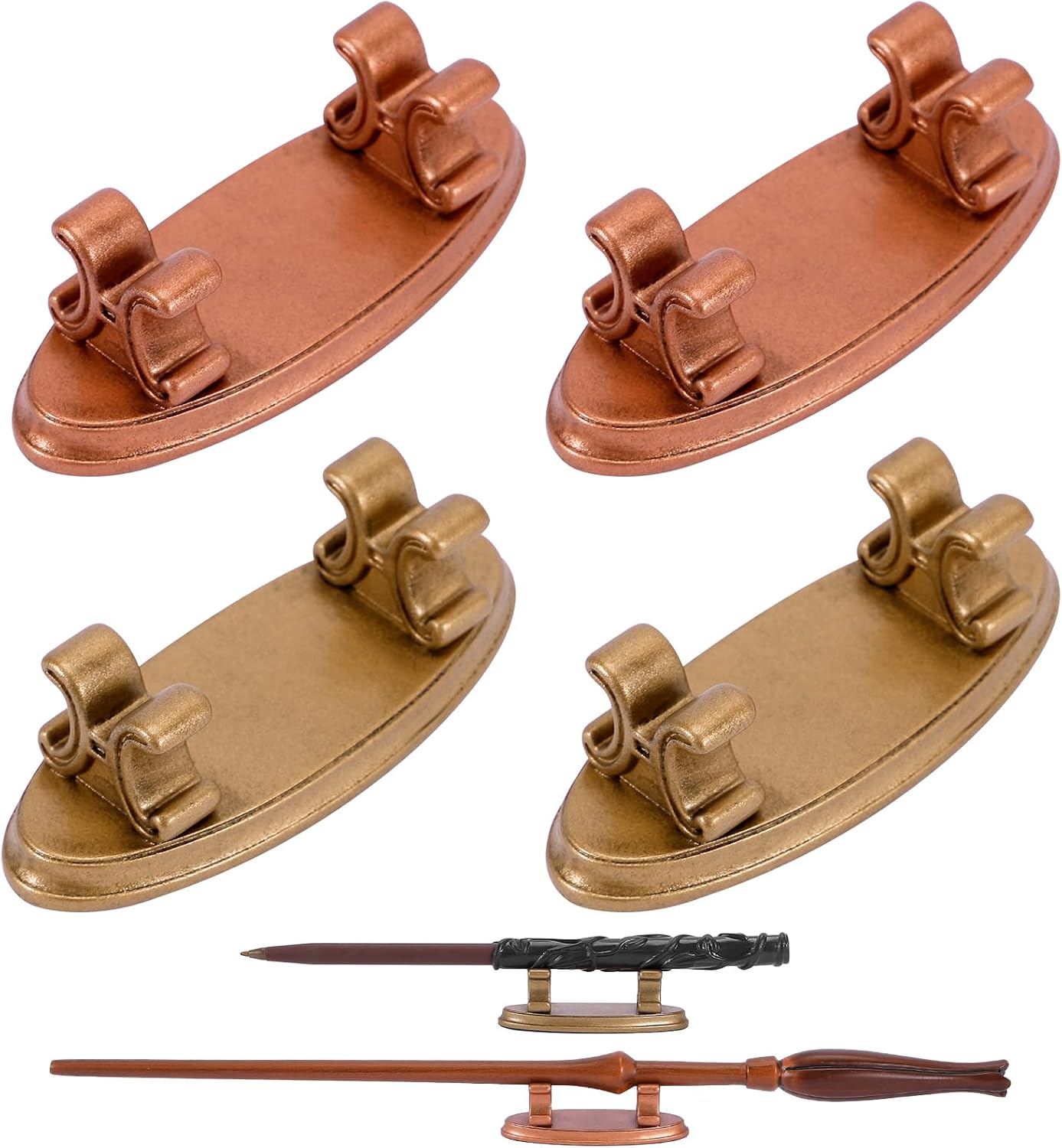 4PCS Resin Pen Holders Wizard Magic Wand Display Stands Mini Holders for Pencil Desk Decor Collection, 2.8'' L×1.1'' W× 0.9'' H, Gold & Rosegold