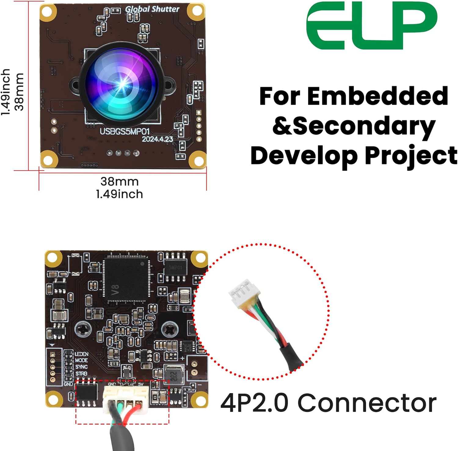 ELP 5MP Global Shutter 50fps USB Camera - Wide Angle Webcam for Live Streaming (100 No Distortion Lens)