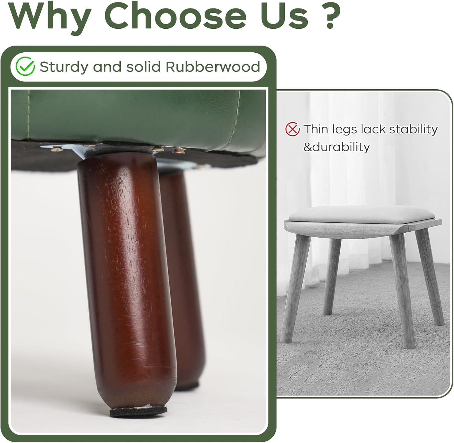 - ăAnti-Slip Designă- These faux leather foot stools small ottoman rubber legs come with dedicated felt pads to prevent scratches on floor and keep it from sliding.Wood leg with non-slip felt pad is quiet when moving, and can avoid leaving scratches on floor.The small footstool is perfect for small spaces and is compact enough not to get in anyone's way.