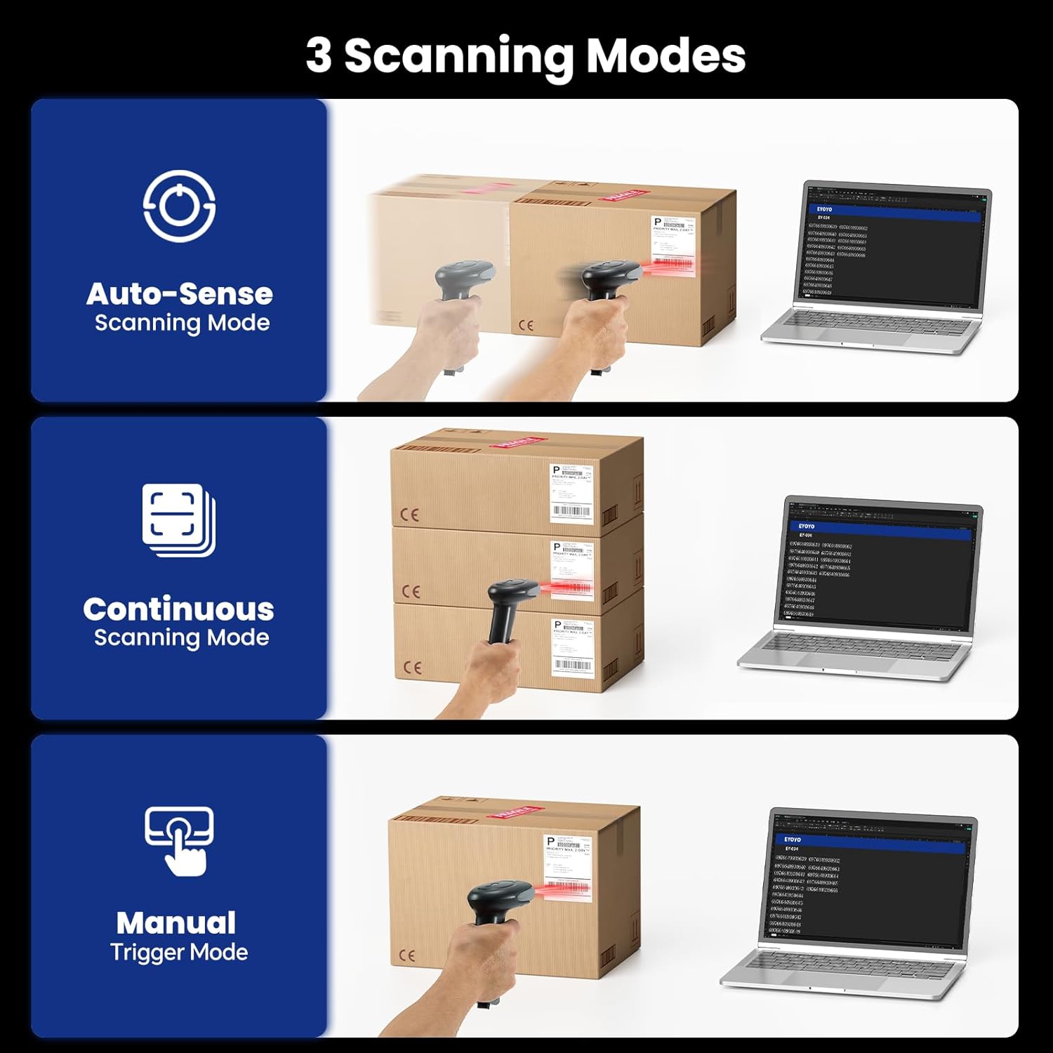 Eyoyo 2D Barcode Scanner Wireless: Handheld 3-in-1 Bluetooth USB Wired QR Code Scanner, 1D Bar Code Reader for Library, Warehouse Retail POS Compatible with iPad, Android Phone, iPhone, Laptop, PC
