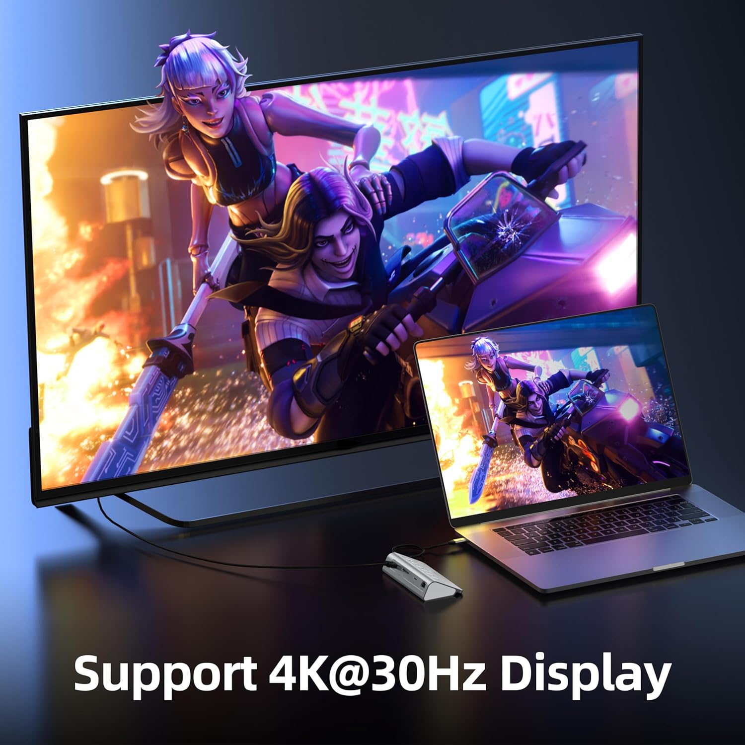 - HDMI 4K@30Hz: intpw usb hub for laptop can stream 4K@30Hz video to HDTV, Monitors or projectors via HDMI port, ensuring an immersive 3D visual experience for you. (Note:The host USB-C port on your device must support Display Port Alt Mode)