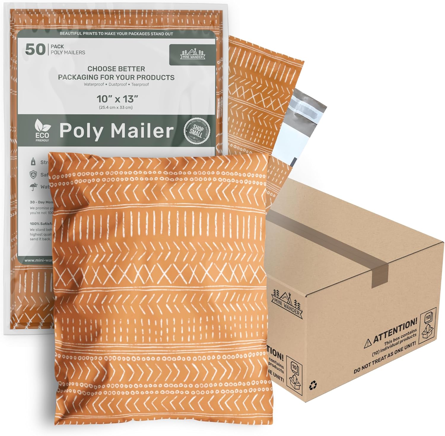 Poly Mailers 10x13 Inch 500 Pack Medium Shipping Bags Strong Thick Mailing Envelopes | Self Sealing Adhesive | Waterproof & Tear Resistant | Small Business Packaging for Clothing - Boho Brown