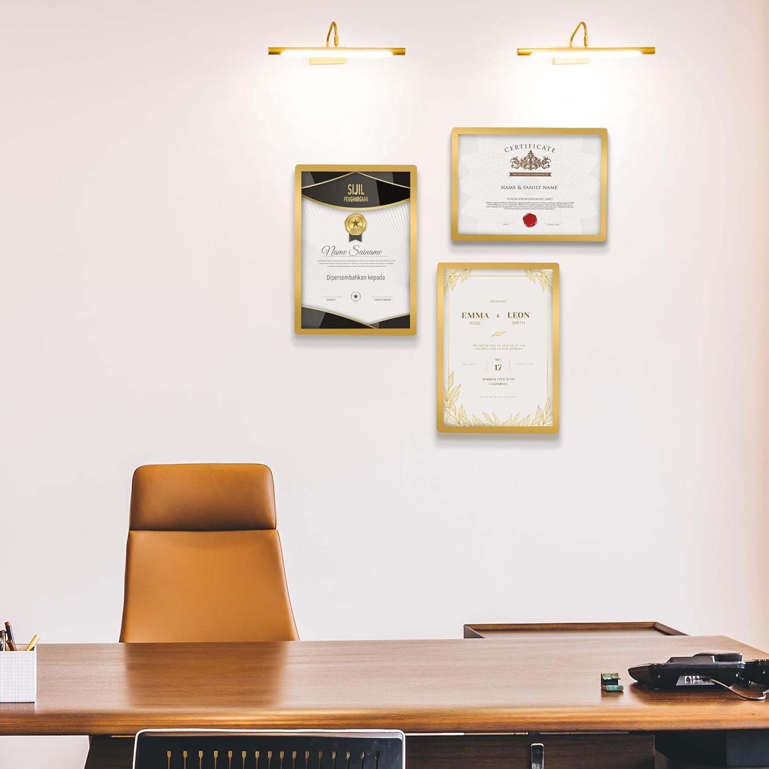 2 Pack 8.5"x11" Sign Holder Wall-mounted, Self-Adhesive Display Frame for College Certificate/Poster/Paper/Picture Office/Store/School Display Sign Holder with Horizontal and Vertical (Gold)