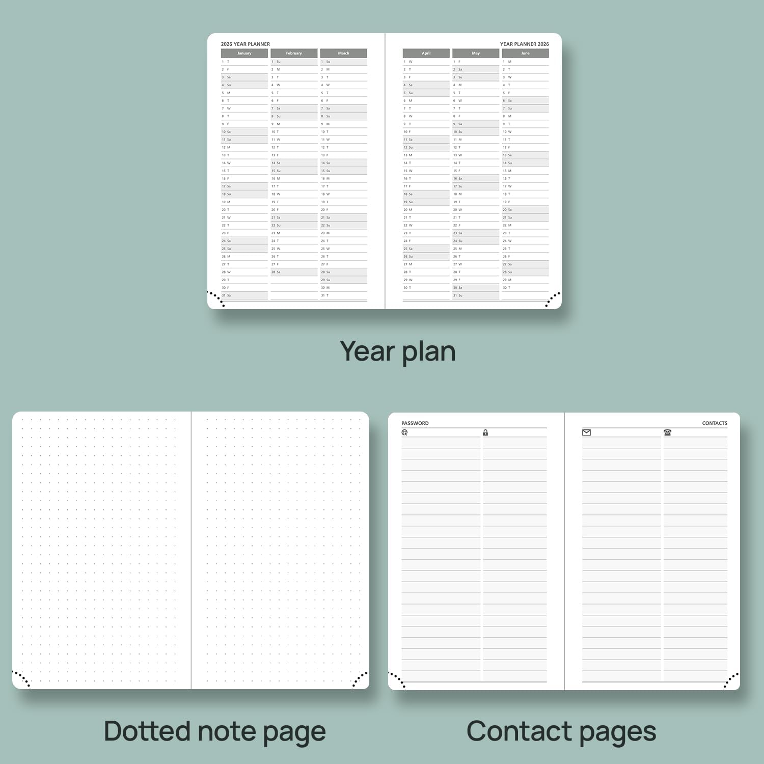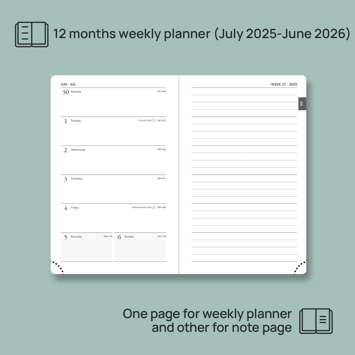 • EXTRA FUNCTION PAGES: This 2025-2026 weekly planner also contains "2025-2026 Yearly Overview" Page + "2025-2026 Holiday & Calendar" Page + Monthly Expenses Page+ Contact & Password Pages + Dotted Notes Pages for jotting down your ideas, thoughts or any other happy things in detail.