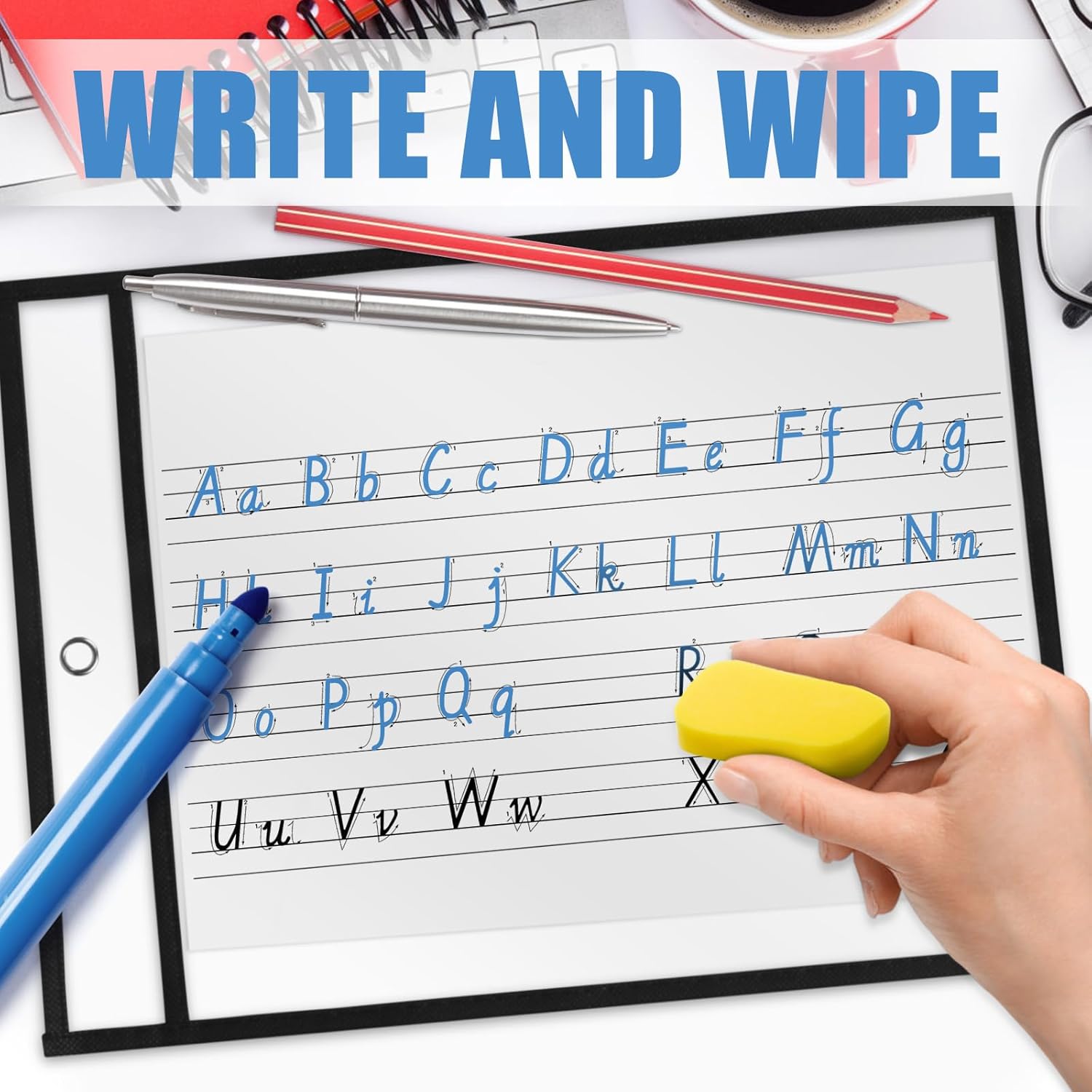 - [Write and Wipe Dry Erase Pockets] It is easy to clean the writing on the clear waterproof surface. Help to save ink, paper copies, money, and print time