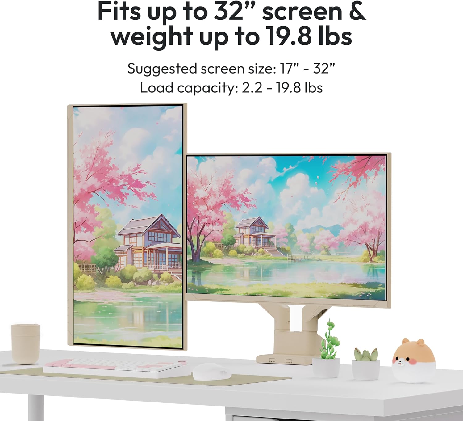 Pixio PS1D Wave Beige Dual Monitor Arm Stand Desk Mount - Fits up to 32 inches Monitors and up to 19.8lbs. VESA Compatibility and Integrated Cable Management