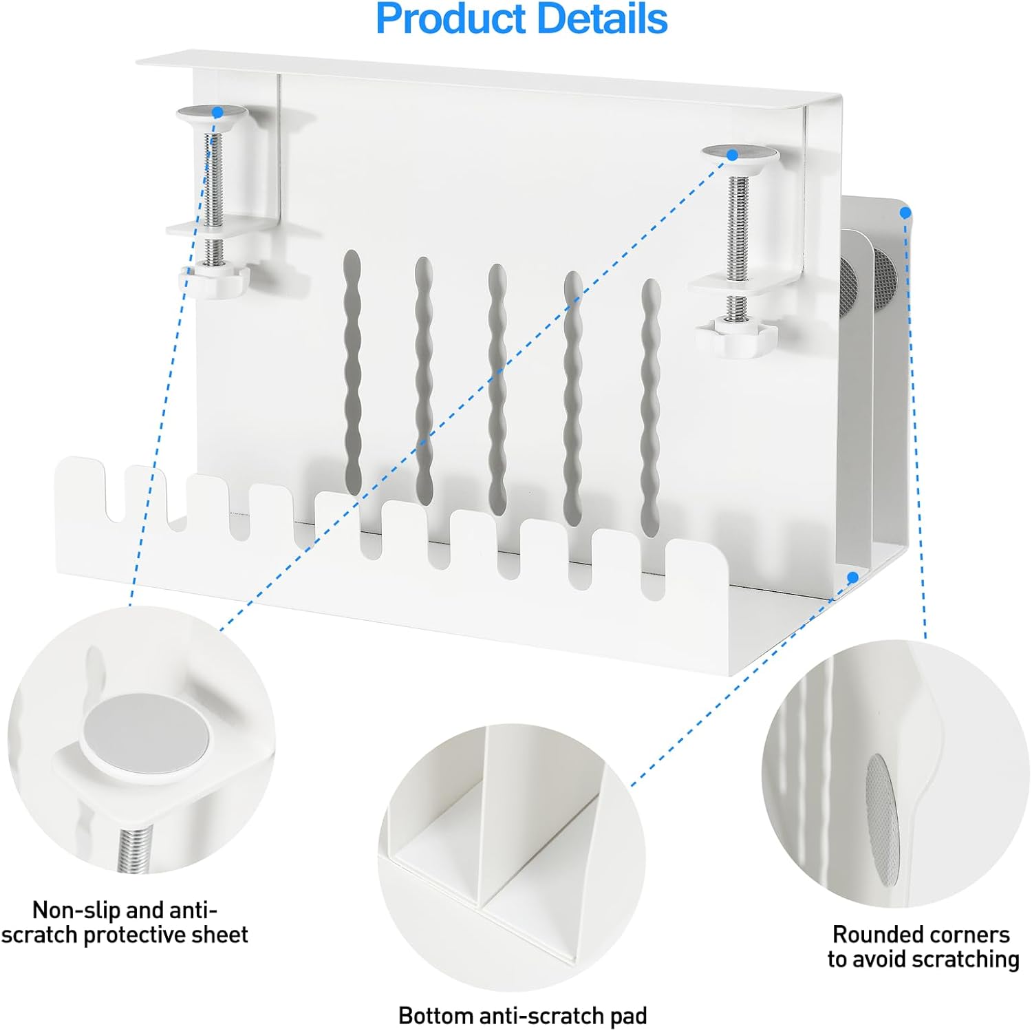 - ăHigh Quality MaterialăThis metal side hanging desk organizer is crafted from high quality iron. This sturdy under-desk laptop holder supports up to 22lbs and can be paired with magnetic cable holders, USB hubs, and other devices.
