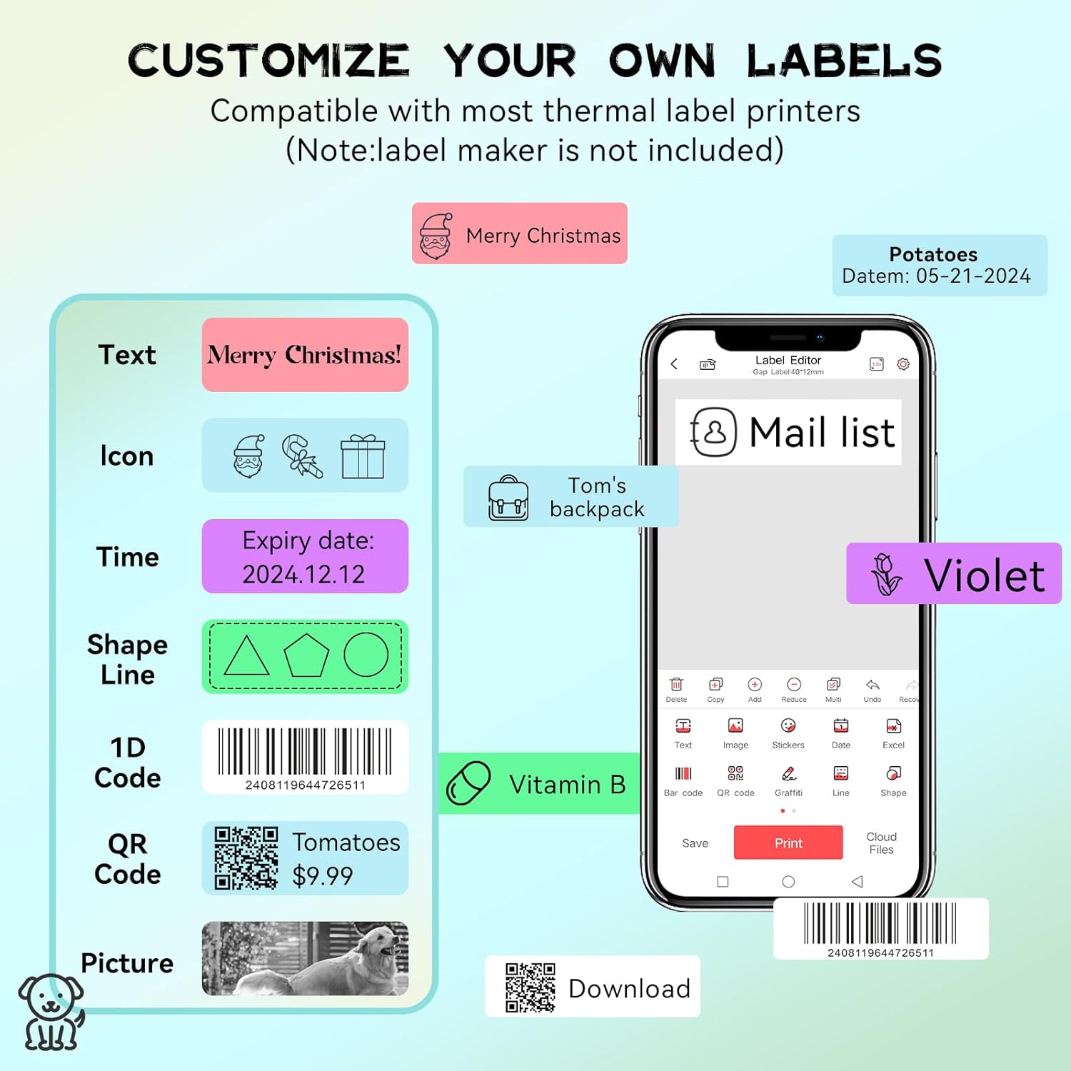 - Note: If you are unable to print, please check first: 1. Confirm whether the sticker is placed upside down, 2. Confirm whether the printer has sufficient power, otherwise charge it before use. Not Suitable For Encrypted Printer — NIMBOT D11 New Model, MAKEID Q1/E1/L1. You Could Confirm With Us For Other Printers That Are Not Mentioned.