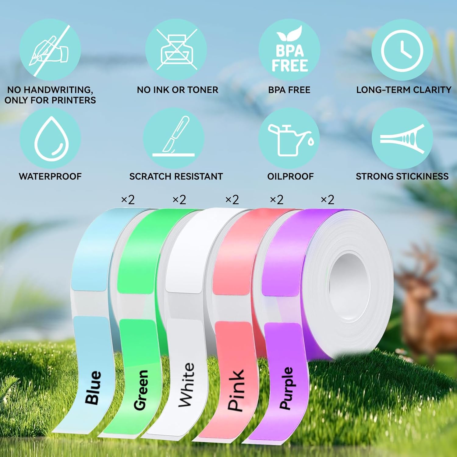 - Label Maker Tape — You could get 10 rolls of labels in total, with sizes 12x40mm (0.47"x1.57"), 165 labels/roll, and 1650pcs in total. 2 Rolls white, 2 Rolls pink, 2 Rolls blue, 2 Rolls green and 2 Rolls purple.