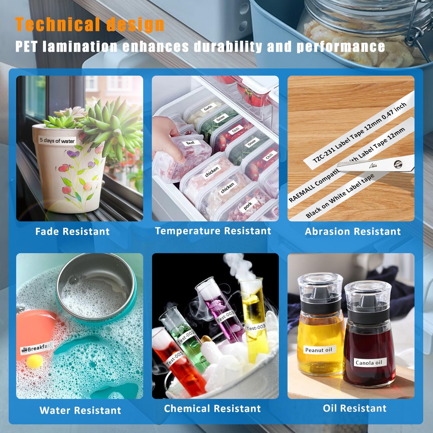- Features: Replacement for brother tze tz tape 12mm 0.47 laminated white tape is waterproof, abrasion resistant, fade resistant and temperature resistant; Split Backing Design: The backing tape is split lengthways down the middle for easy peeling