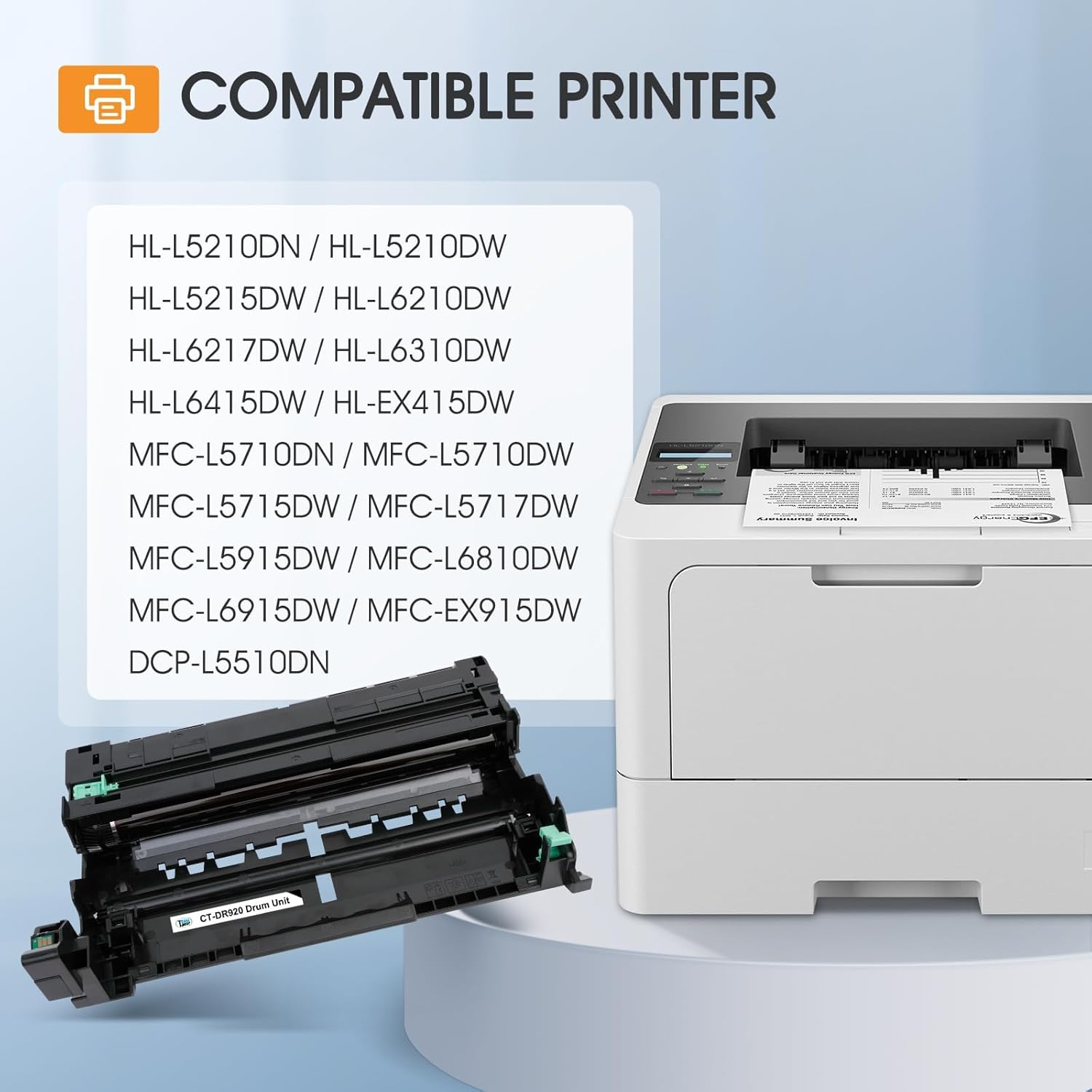 - Compatible Devices : DR920 Drum Unit for HL-L5210DN HL-L5210DW HL-L5215DW HL-L6210DW HL-L6217DW HL-L6310DW HL-L6415DW HL-EX415DW DCP-L5510DN MFC-L5710DN MFC-L5710DW MFC-L5715DW MFC-L5915DW MFC-L6810DW MFC-L6915DW MFC-EX915DW DR920 Drum Unit for HL-L5210DN HL-L5210DW HL-L5215DW HL-L6210DW HL-L6217DW HL-L6310DW HL-L6415DW HL-EX415DW DCP-L5510DN MFC-L5710DN MFC-L5710DW MFC-L5715DW MFC-L5915DW MFC-L6810DW M… See more