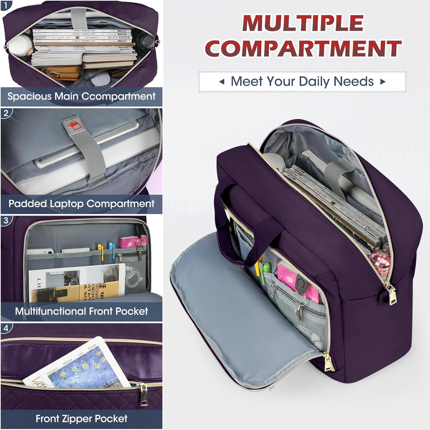 - 【Convenience & Comfortable Design】TSA friendly, separate tech compartment and large opening design allow you to quickly pass through the security check. The laptop bag for women features removable, adjustable padded shoulder strap that can adjust the length to fit different heights and reduce shoulder pressure. Sturdy PU handle to ensure comfortable carrying. Luggage strap allows the laptop messenger bag to slide over the luggage tube, freeing up your hands.