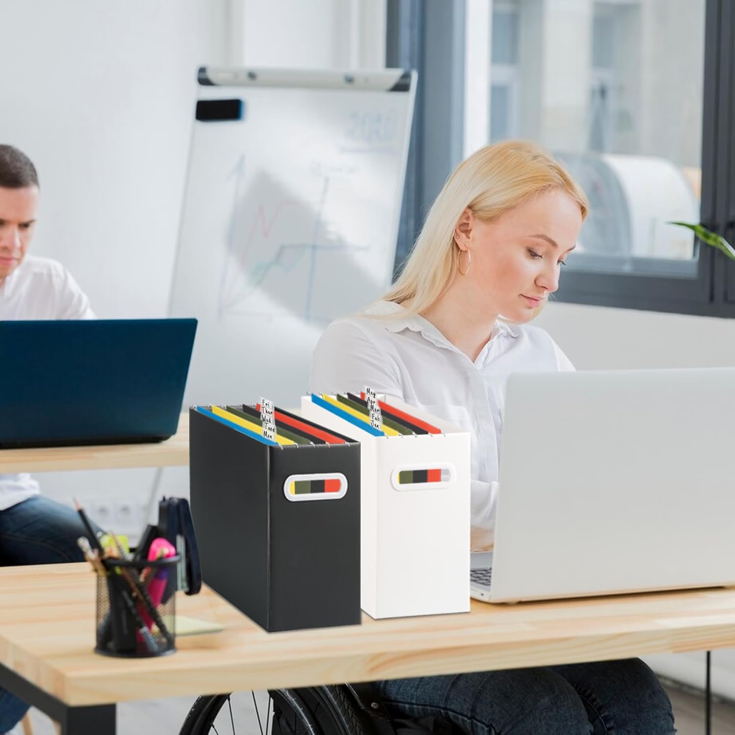 - High-Quality Construction:Made with sturdy,tear-resistant material,these hanging file folders are built for long-term use. The strong metal rods provide smooth sliding inside file cabinets, ensuring that your documents stay organized and accessible.