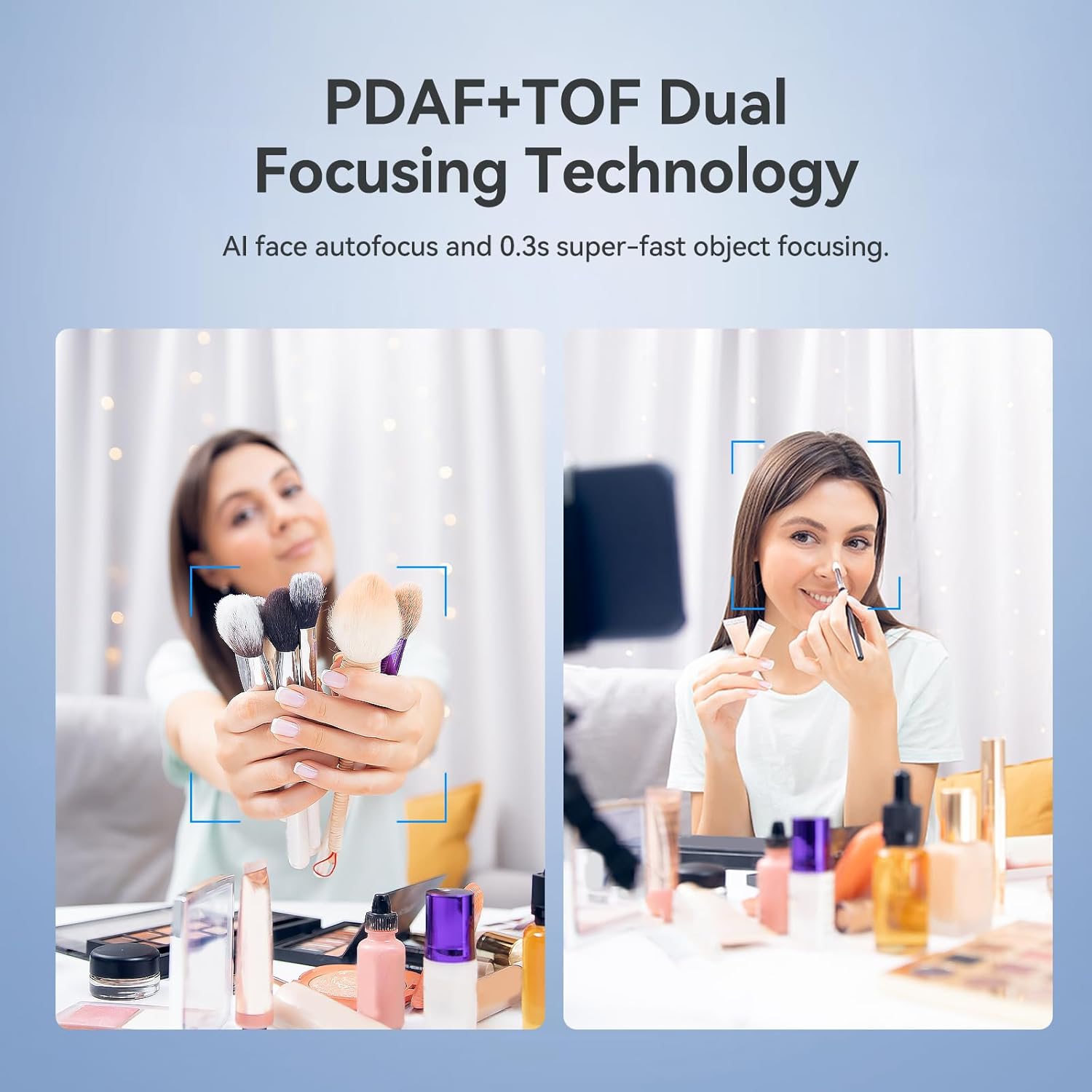 - Special Feature : 4K@30FPS and 1080P@60FPS, Adjustable Heights with 360° Swivel Head, HDR, PDAF&TOF Dual Autofocus, Sony Sensor with a 1/2" capturing size, F/1.8, f=4.71mm 4K@30FPS and 1080P@60FPS, Adjustable Heights with 360° Swivel Head, HDR, PDAF&TOF Dual Autofocus, Sony Sensor with a 1/2" capturing size, F/1.8, f=4.71mm