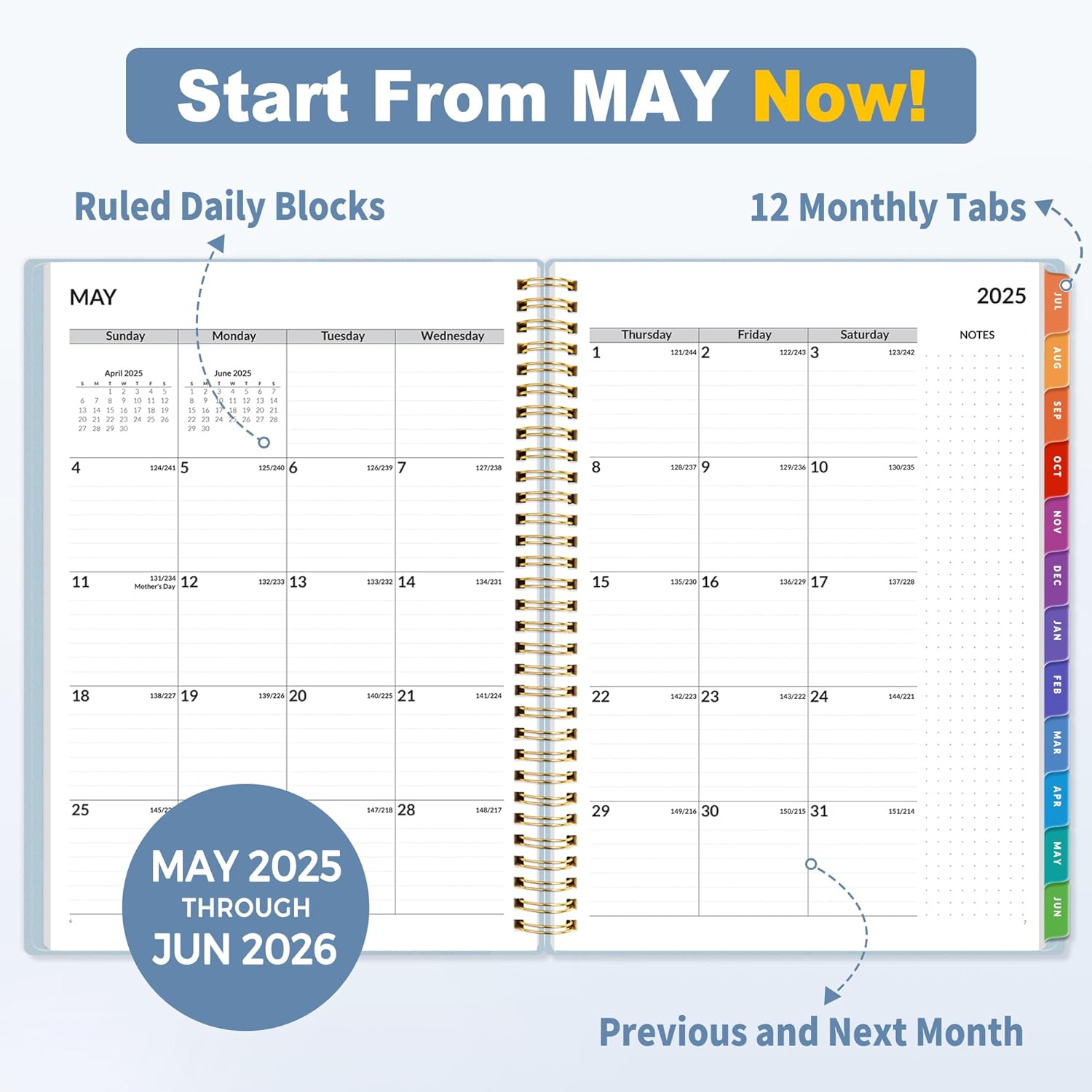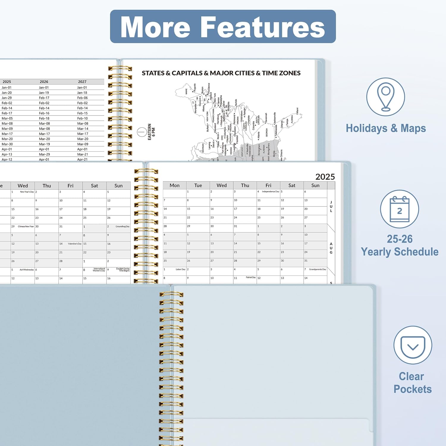 • 2025-2026 Professional Planner: Cover from July 2025 to June 2026, Features 12 months of weekly and monthly pages, 2 additional monthly pages (May 2025 - June 2025) are included for all your planning and scheduling needs, with Lay-flat capability and measures 8.5" x 11".