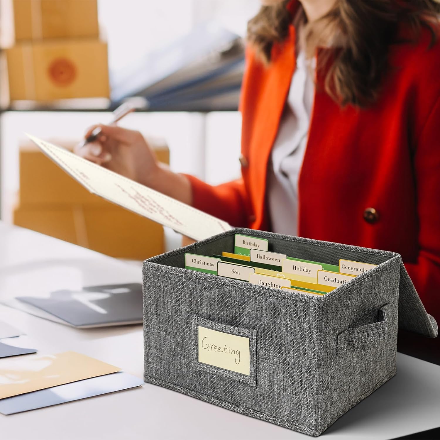 Vienrose Greeting Card Organizer Storage Box with 20 Removable Dividers, 84 Self-stick Labels, Perfect for Photos, Envelopes, Scrapbooking, Paper, Stickers Holder 1 Pack Grey