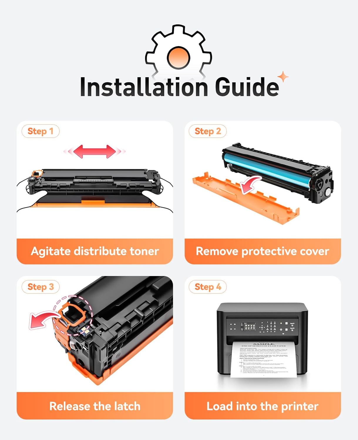 - Total Packges: 4-Pack of 131A toner Cartridges.(1*Black CF210A toner, 1*Cyan CF211A toner, 1*Yellow CF212A toner, 1*Magenta CF213A toner),Cost per page $0.01.