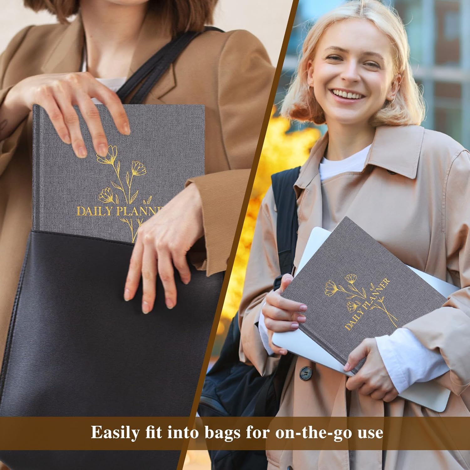 Lanpn Undated Daily Planner Hourly Schedule Notebook, 196 Pages 2 Page per Day To Do List Notebook Notepad Appointment Work Planner, Hardcover Daily Journal Organizer Book For Women 7.7" x 9.3" Grey