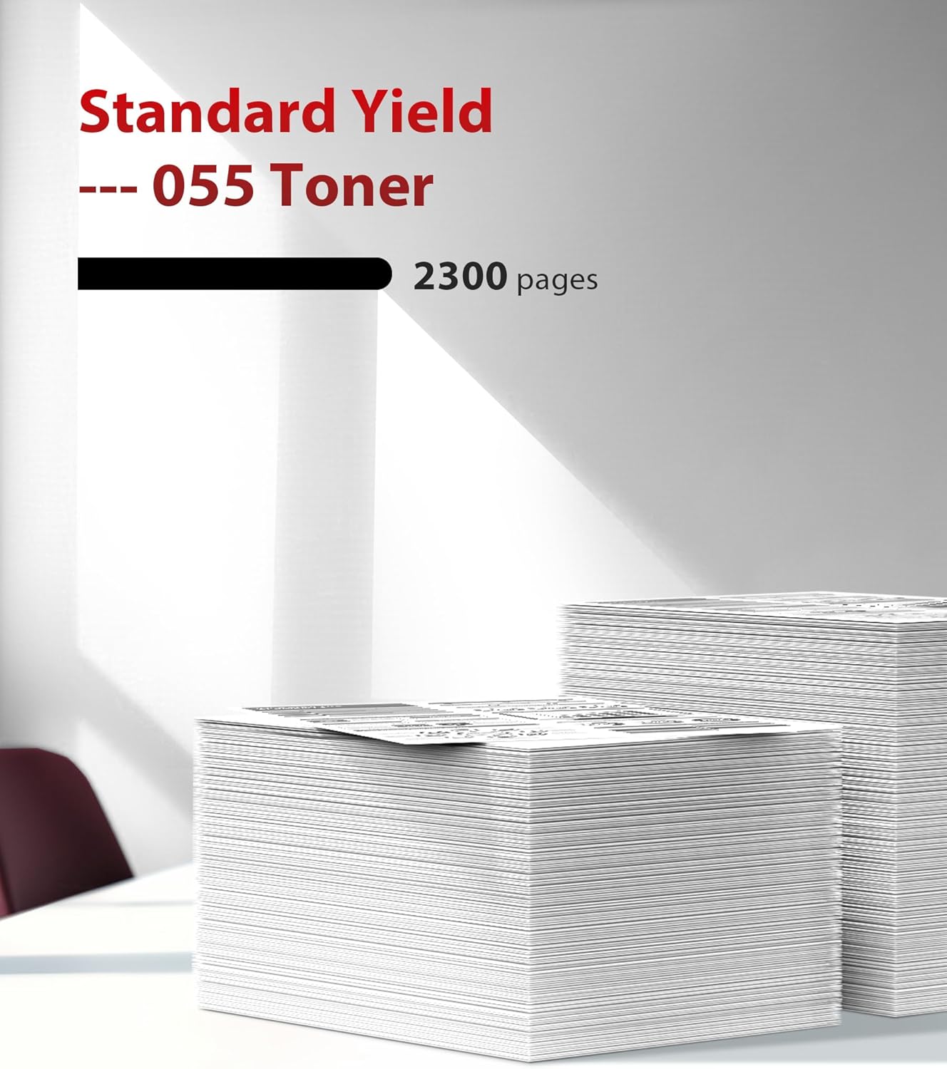 • 2. Page Yield:Up to 2300 pages for toner replacement for canon 055 black toner. Also availble for canon 055h toner cartridge set. (Letter/A4, at 5% coverage)