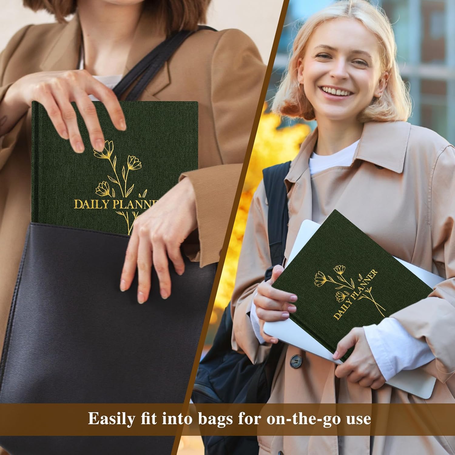 Lanpn Undated Daily Planner Hourly Schedule Notebook, 196 Pages 2 Page per Day To Do List Notebook Notepad Appointment Work Planner, Hardcover Daily Journal Organizer Book For Women 7.7" x 9.3" Green