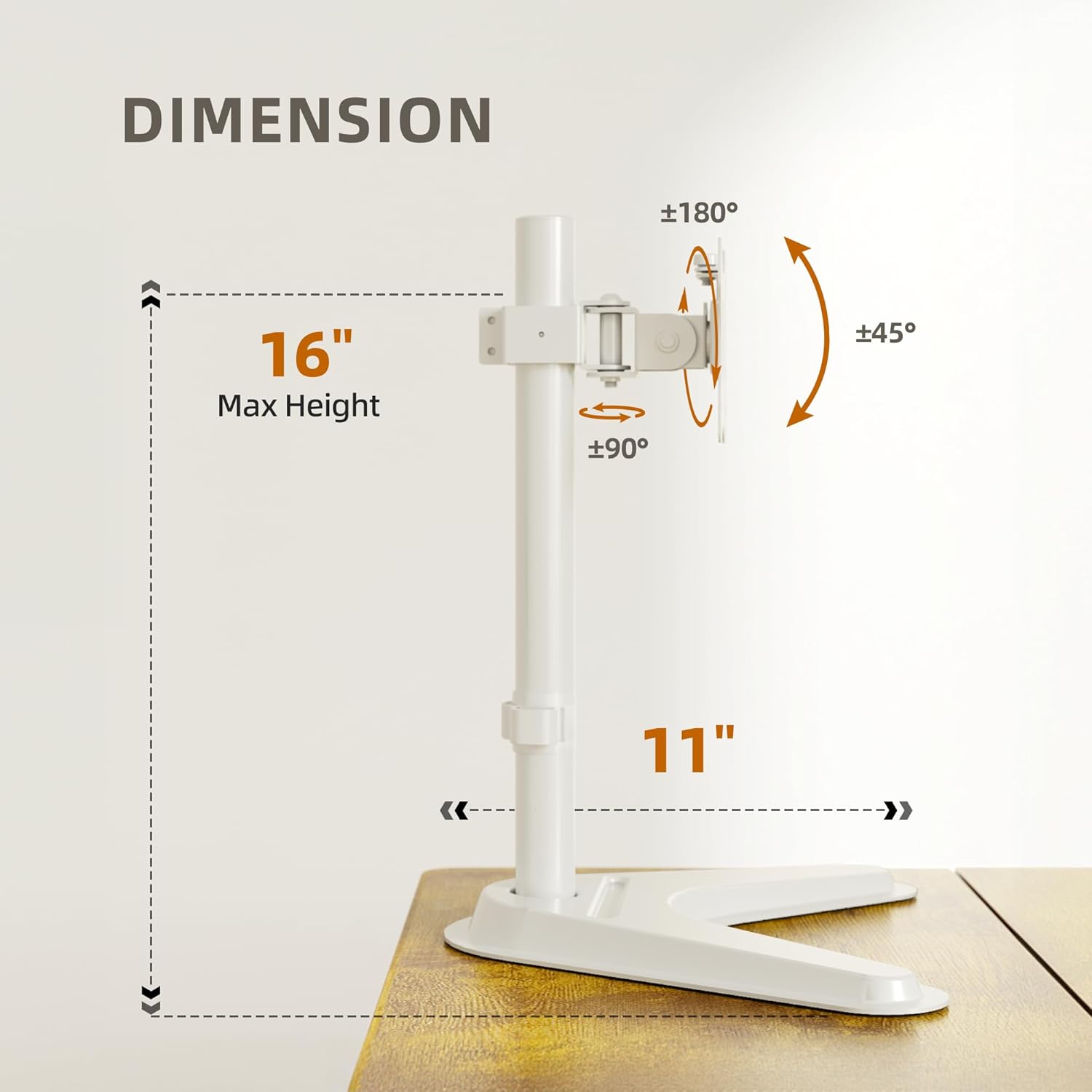 - Full Motion Adjustment: This monitor stand offers multi adjustability with +90°/-90° swivel, and +45°/-45° tilt. These features allow for optimal screen positioning to enhance workspace organization and efficient use of desk space.
