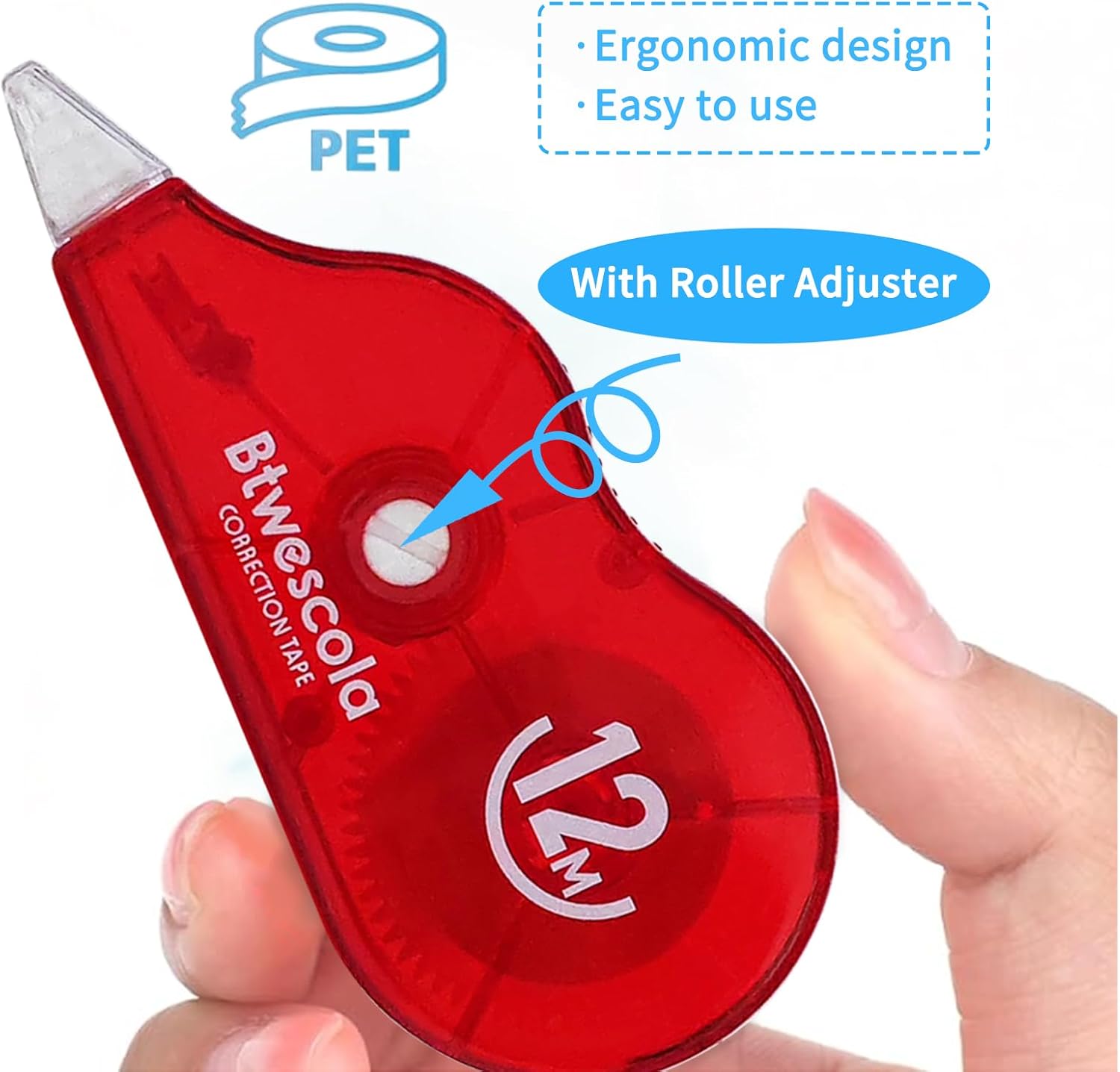 Correction Tape, 39.37FT Gift Packed Tear-Resistant Correction Tape, Tape for School, Office, With Roller Adjuster (9747-12pcs)