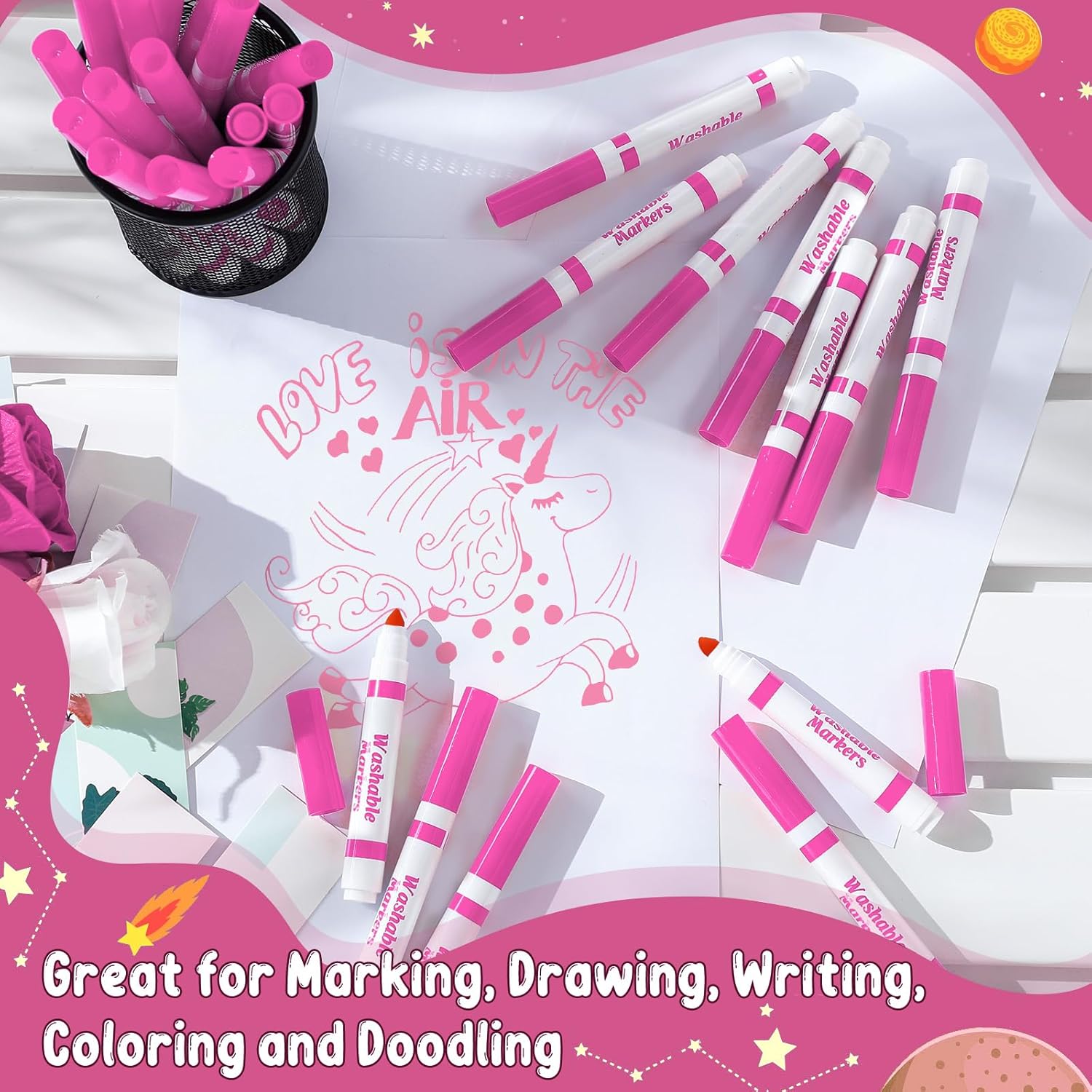 Janlaugh 60 Pcs Pink Washable Markers Bulk Coloring Broad Line Markers for Kids Conical Tip Pink drawing pens for Classroom Back to School travel Art baby shower gender reveal Supplies, Ages 6+