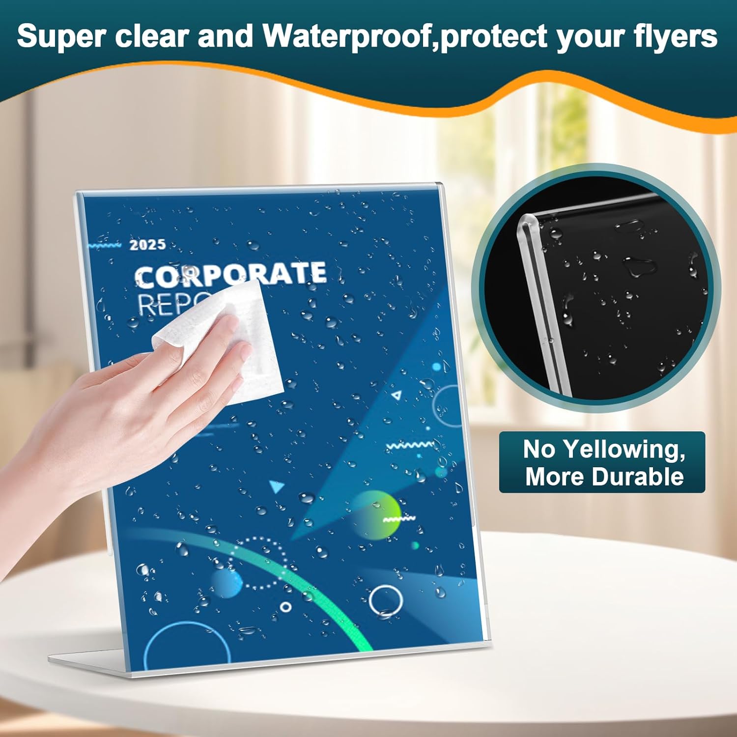 - 【Stable Slant Back Design】Our clear acrylic display stand is designed with slanted base. With this self-standing design, our Table Menu display stand will be stable enough which makes it an ideal choice for displaying images, brochures, and advertising pamphlets in any location.