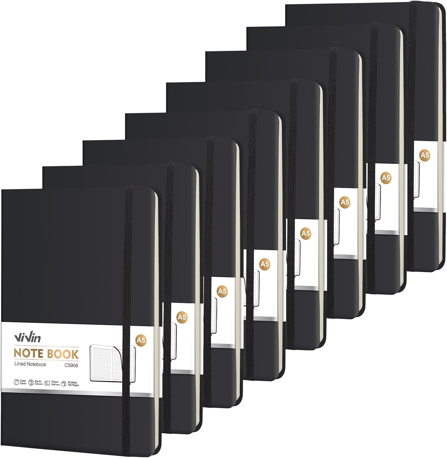 ViVin Lined Journal Notebooks for Work, 192 Pages, Medium 5.5 x 8.3 inch, College Ruled, A5 Hardcover Journaling Notebooks for Writing, 8 Pack Bulk