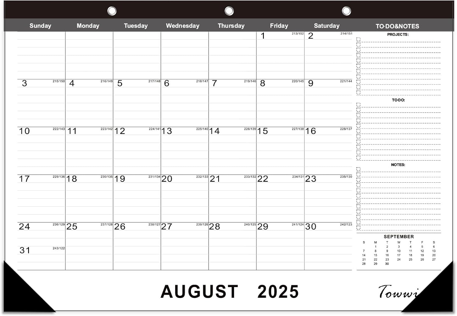 TOWWI 2025-2026 Desk Calendar, 17"x12" Desktop Monthly Calenda for Home, Office, Family with To-do List, Ruled Blocks, Corner Protectors