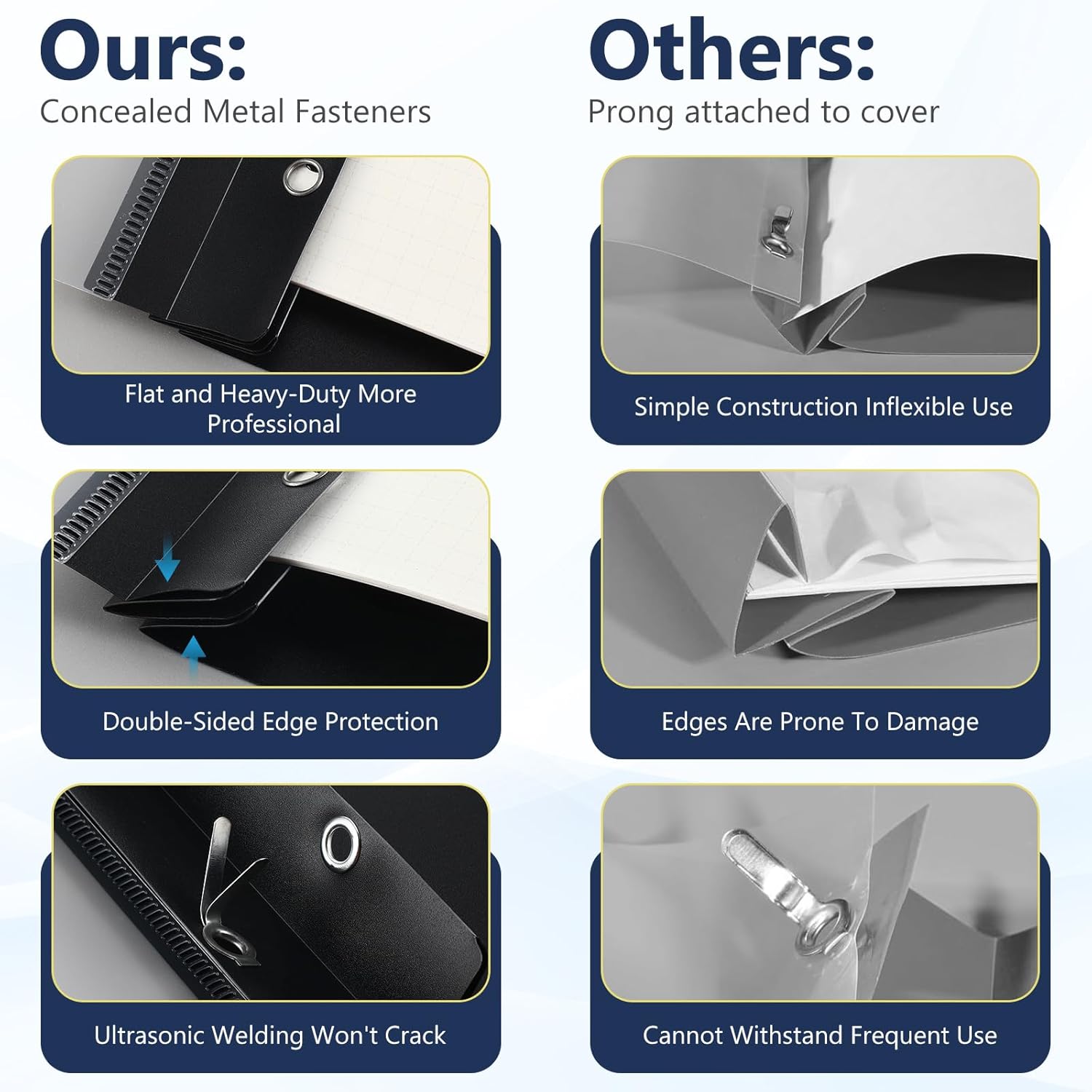 - Sturdy and Practical Design: each of these report folders comes with 3 prongs and thick metal fasteners and double sided edge protection to prevent wear; Each front report cover can conveniently hold up to 100 sheets of 3 hole punched paper; Moreover, the 3 hole design makes it easier to insert and hold your documents securely