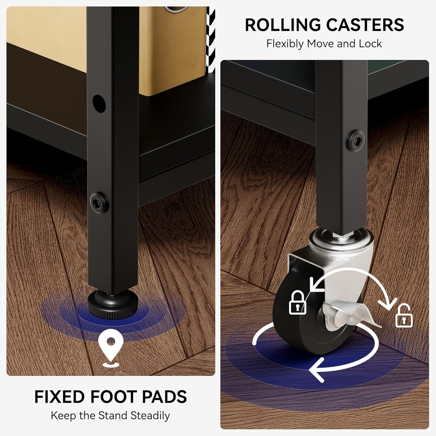 - 【Adjustable Feet and Rolling Casters Both Included】 Come with fixed foot pads and rolling casters, you can choose between full stability or mobility. 2 of the 4 wheels are lockable to keep the printer cart in position. The foot pads can be fine-tuned to prevent wobbling on uneven surfaces, guaranteeing a stable and secure stand.