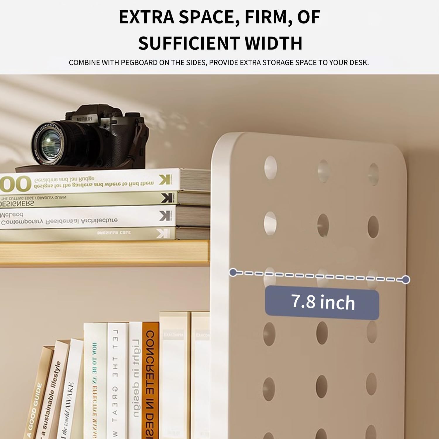 Wood Desk Shelf Organizer, 2 Tier Desktop Bookshelf for Home and Office Supply, Wooden Desktop Organizer with Pegboard Design, Adjustable Display Shelf for Computer Desk