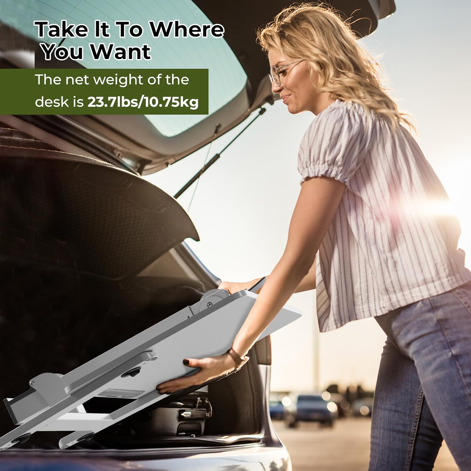 - Foldable Desktop & Base: Featuring 0° to 90° tilting desktop(25.6 x 18.9 inch), this mobile laptop desk provides suitable viewing and typing angles at the squeeze of a handle.After the top and base are folded at the same time, the folding desk is more convenient for storage and transportation. You can even take it on outdoor trips.
