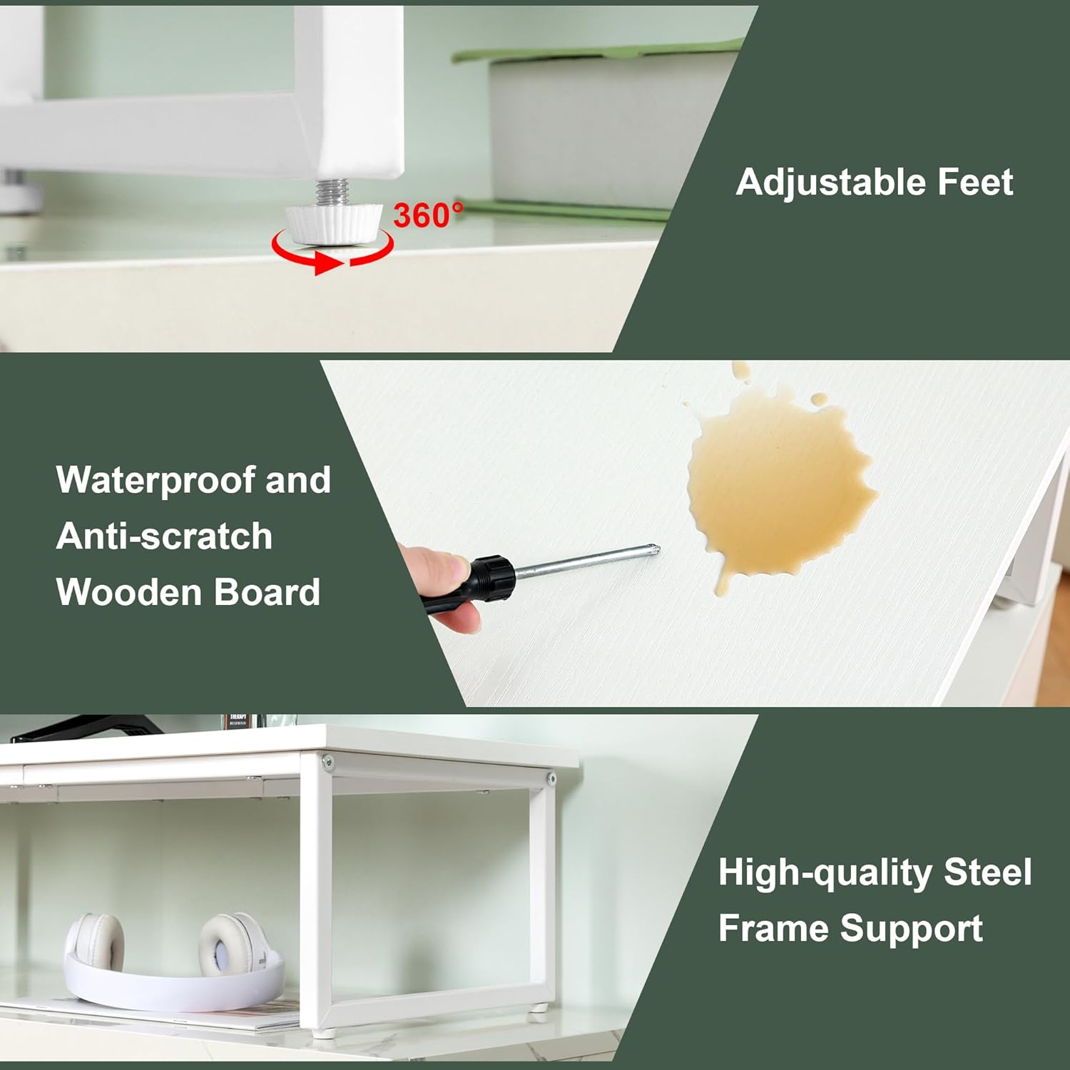 - 【Sturdy and Durable】- The tv riser stand features a padded, wear-resistant tabletop and rust-resistant painted metal frame that increases its weight capacity and sturdiness, holding up to 150 pounds. The tv riser blocks comes with adjustable base feet on each leg, you can adjust the height according to your needs.